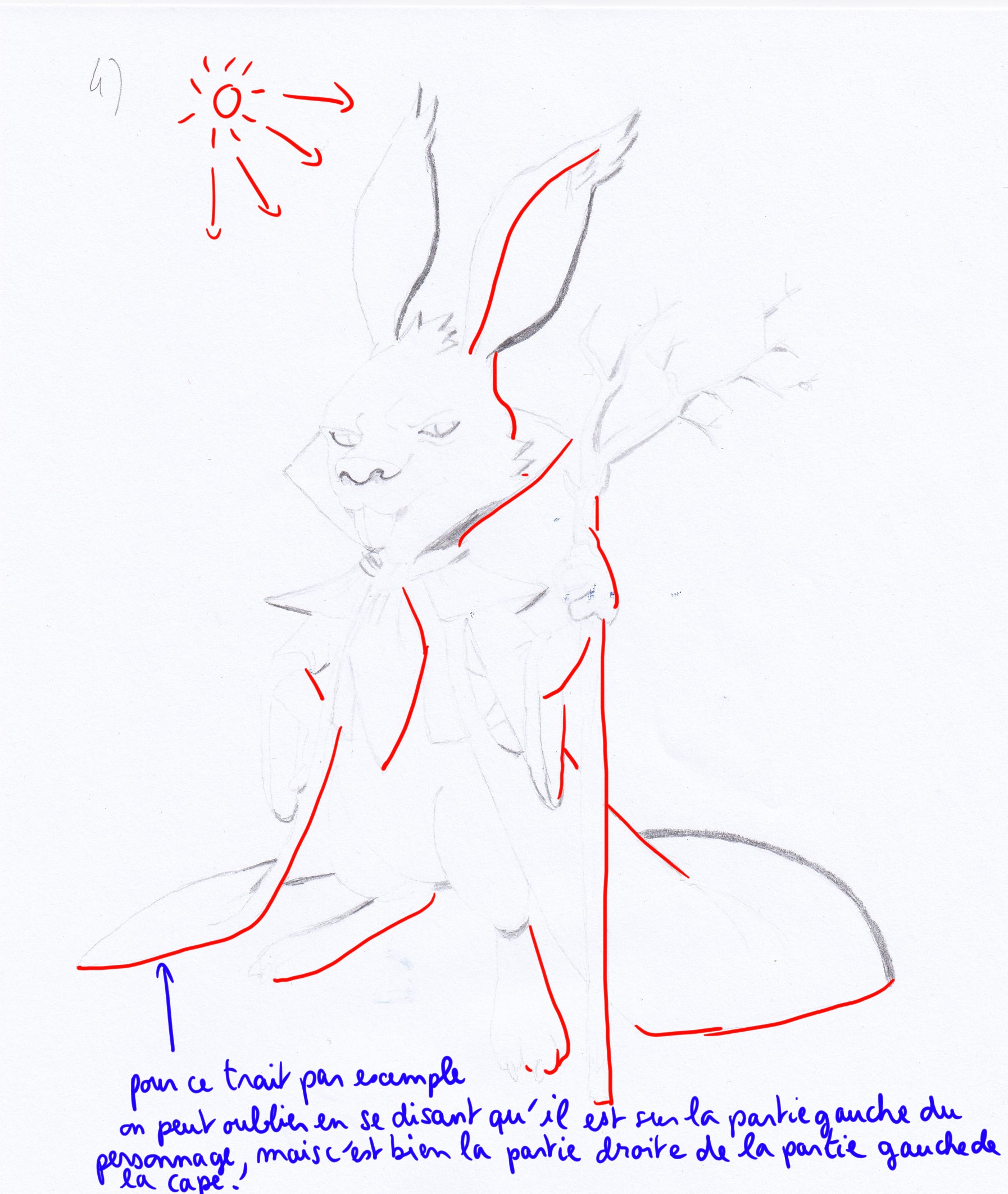 Ah pardon, j'ai loupé la réponse, merci pour le rappel.ça me semble bien compris, peut-être parfois un peu trop épais pour rester harmonieux avec le reste (bas de la cape notamment). Certaines zones ont été oubliées, il faut bien réfléchir à où tape là lumière ou non. j'ai rajouté en rouge les zones manquantes par moi même.