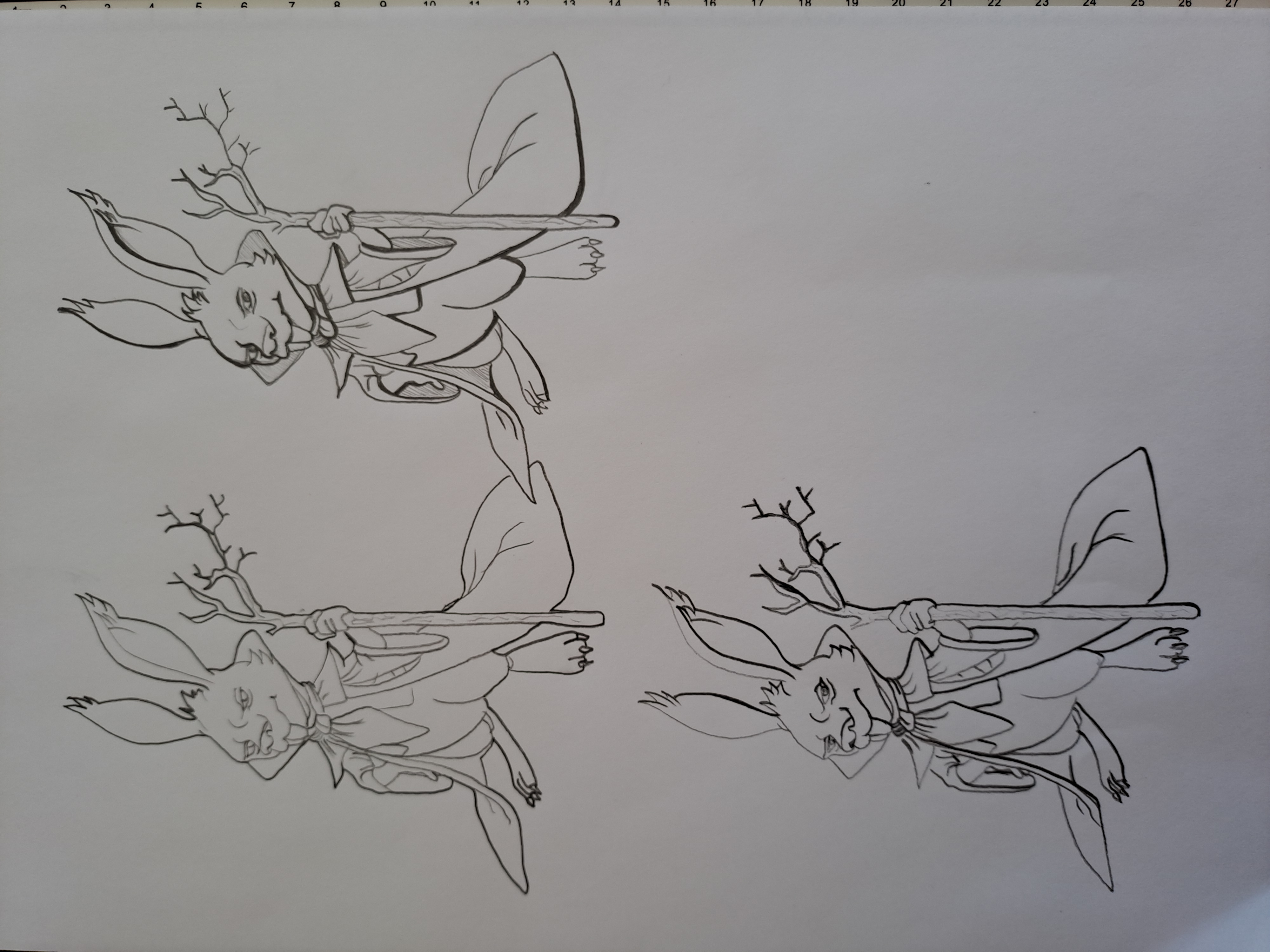 Good evening Sunaria, that's all great! I think you can add more thickness: in view one, you only thickened the outline of the rabbit, but you can also do the cape. In the second one, you focused on the body and not enough on the head, and in the third, it's the lower part of the body that you've kind of neglected...