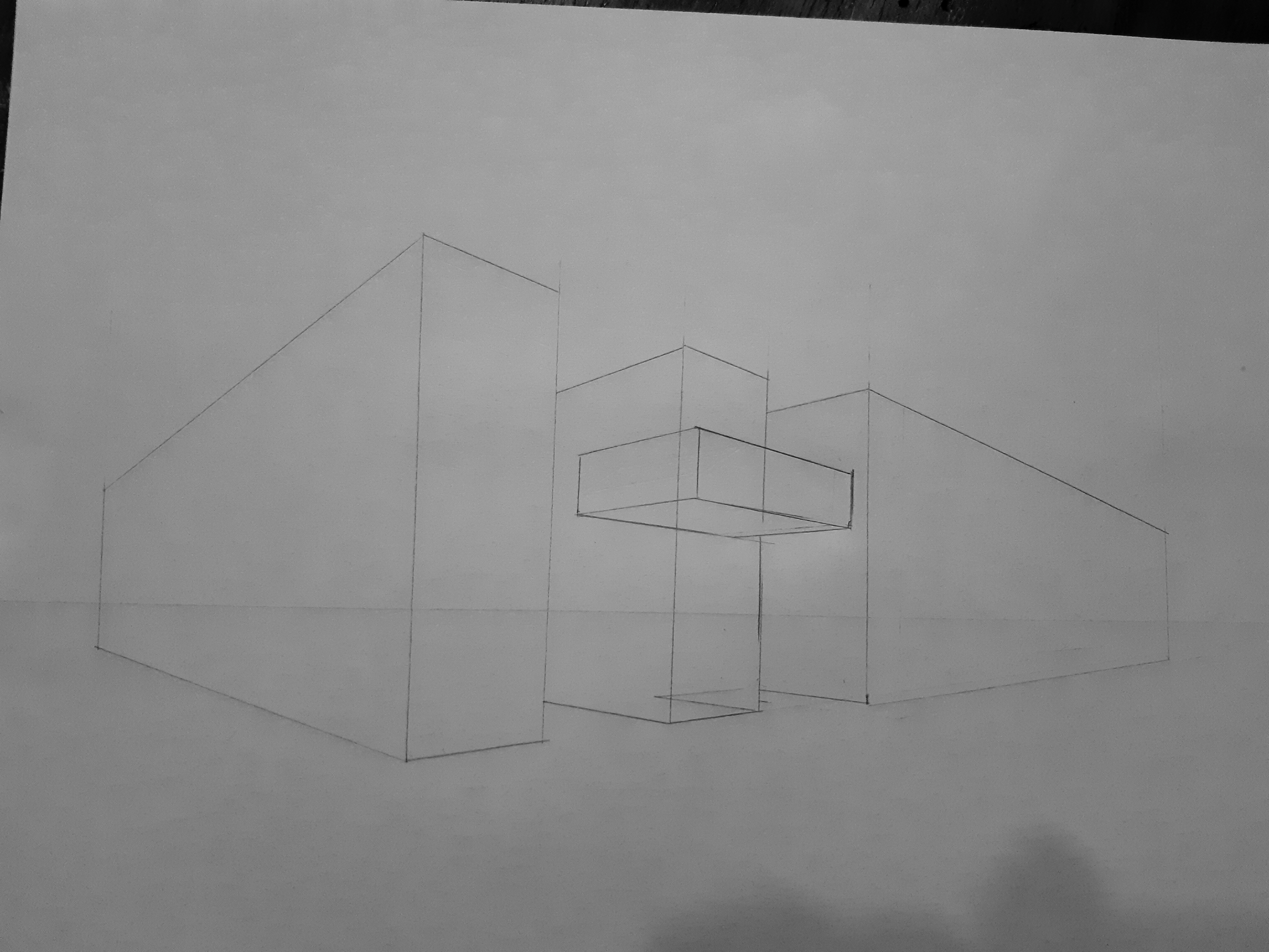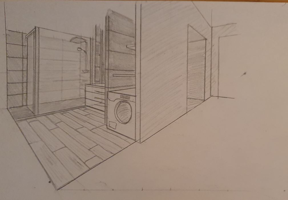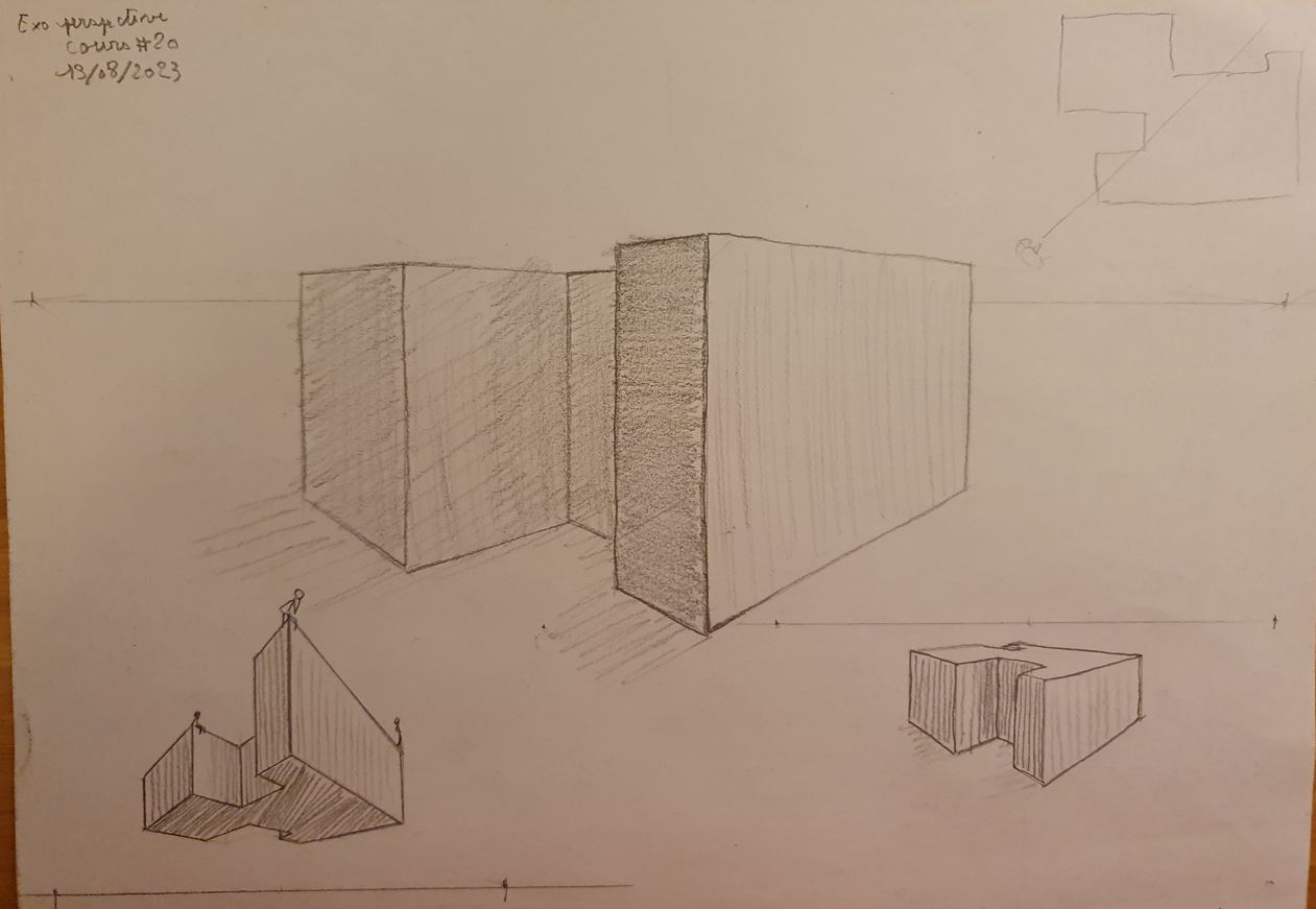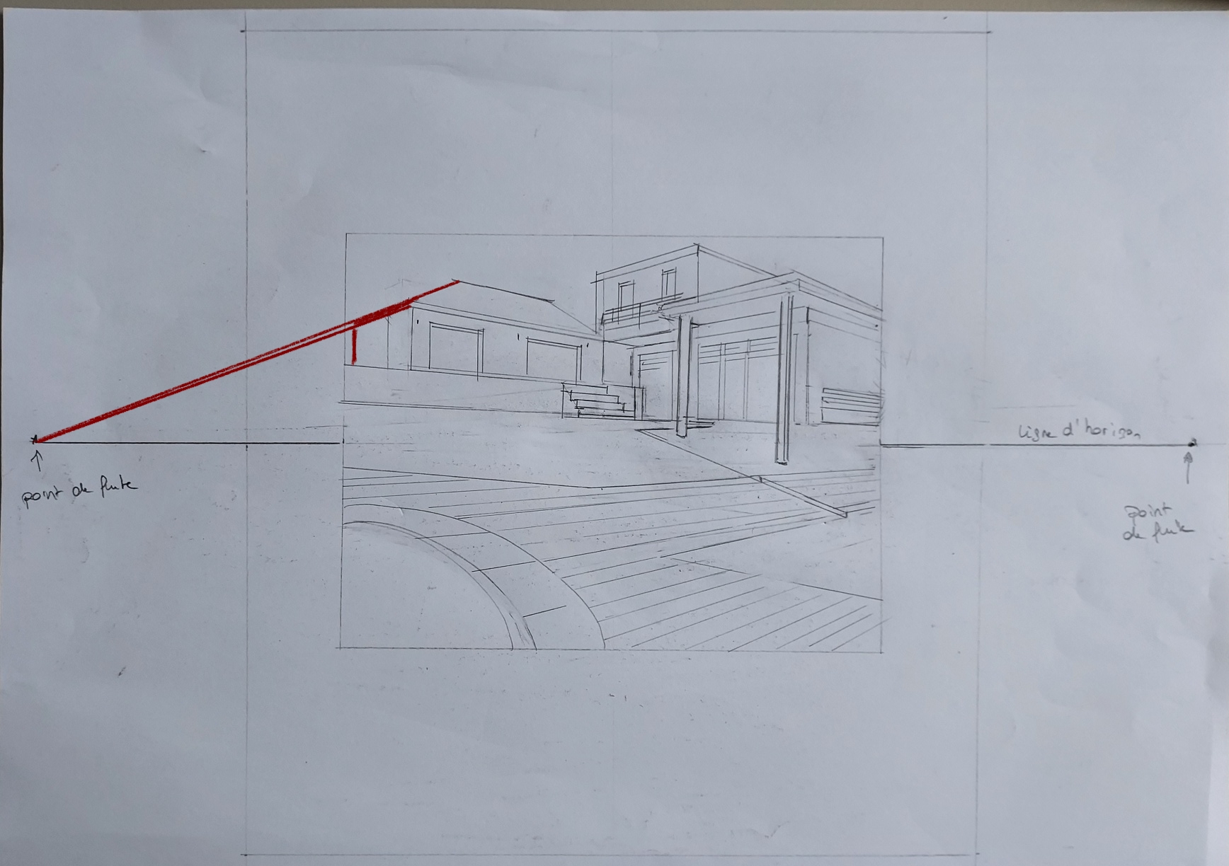 Dessin pas très propre, mais je souhaitais avoir la correction des perspectives avant tout.