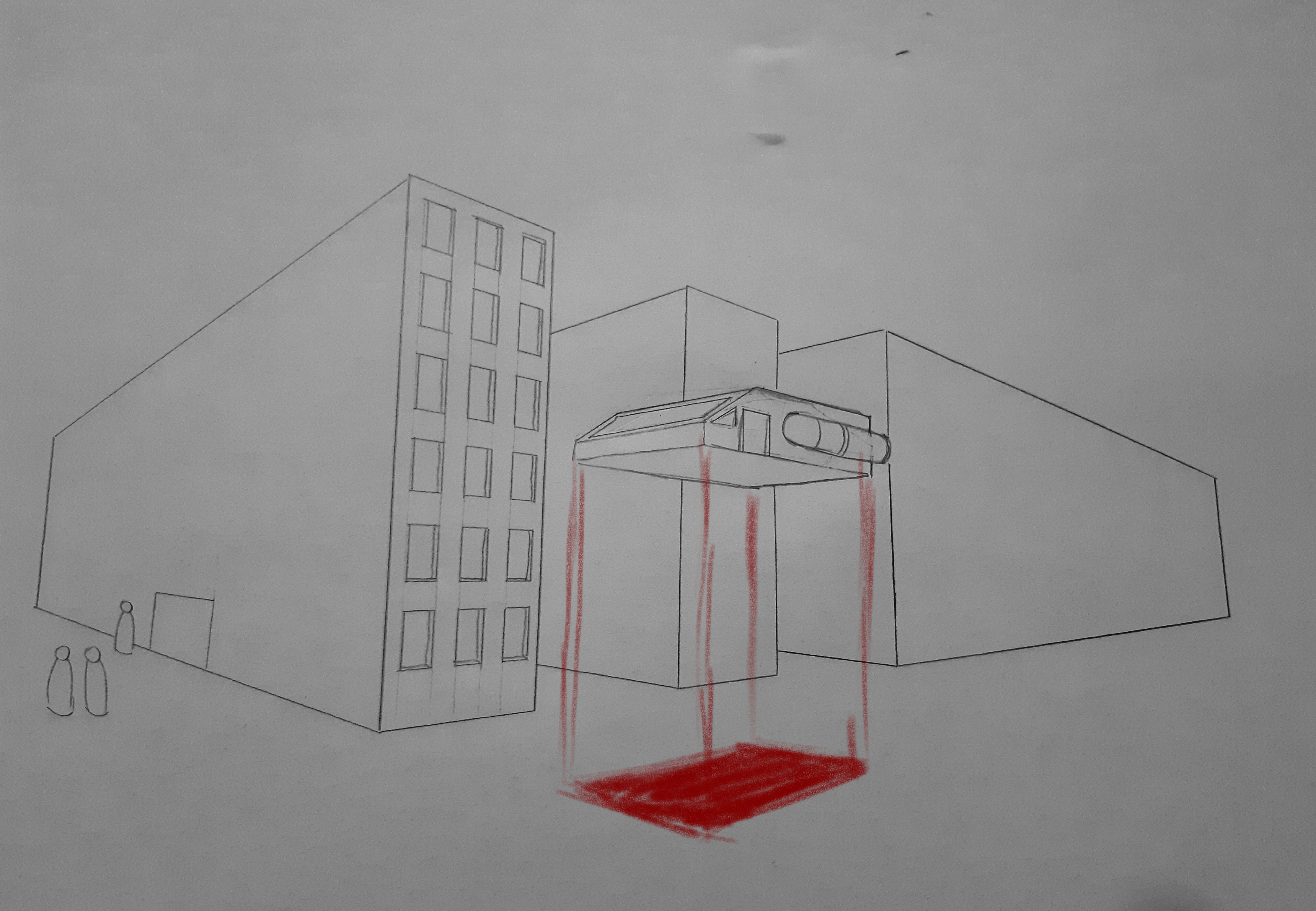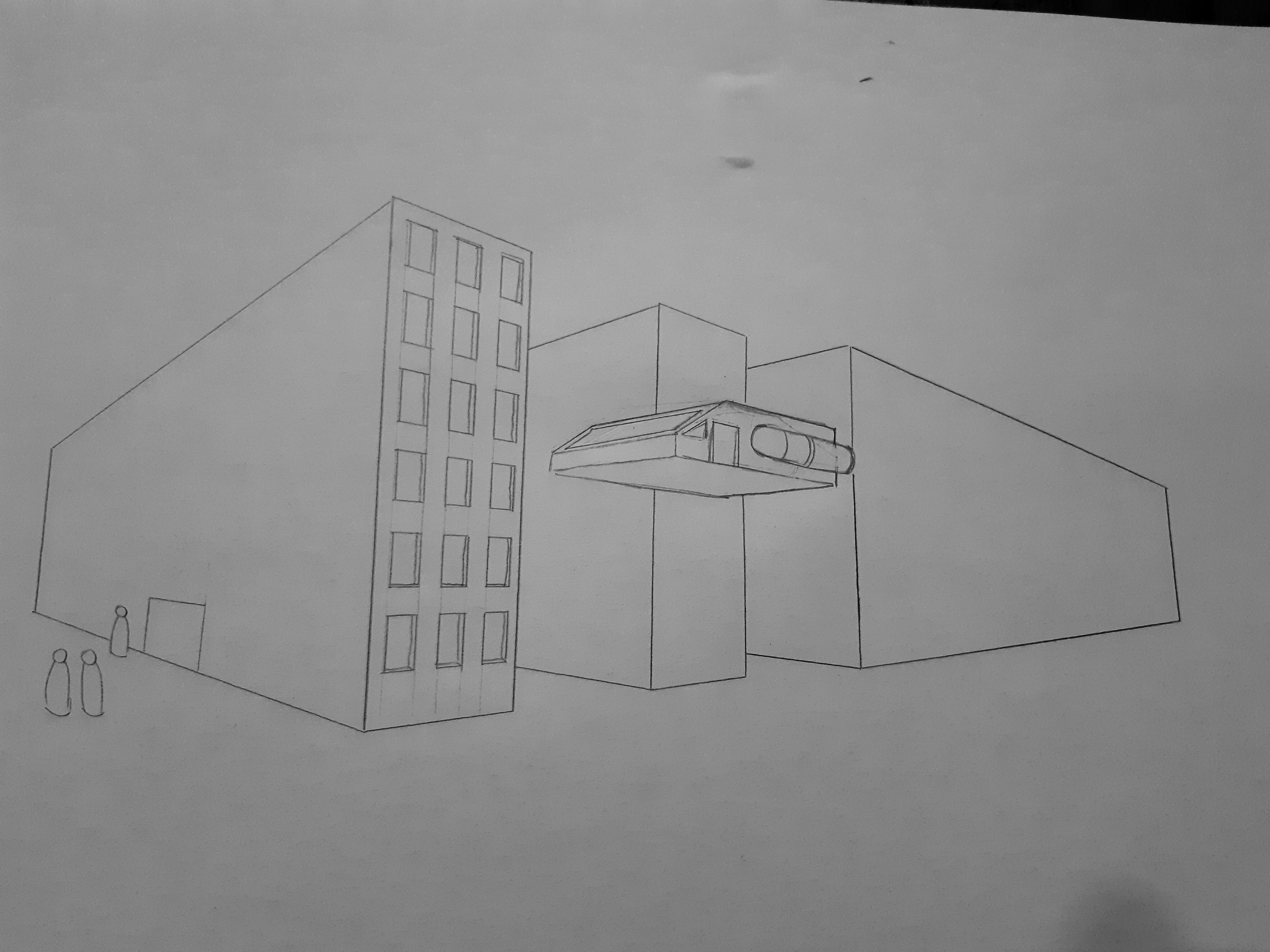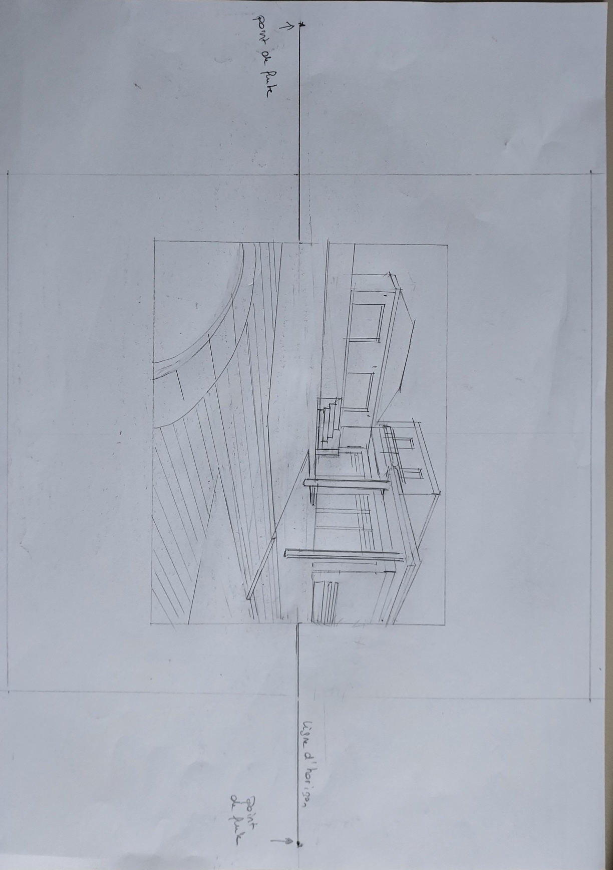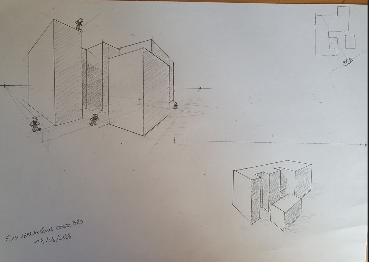 Dessin pas très propre, mais je souhaitais avoir la correction des perspectives avant tout.