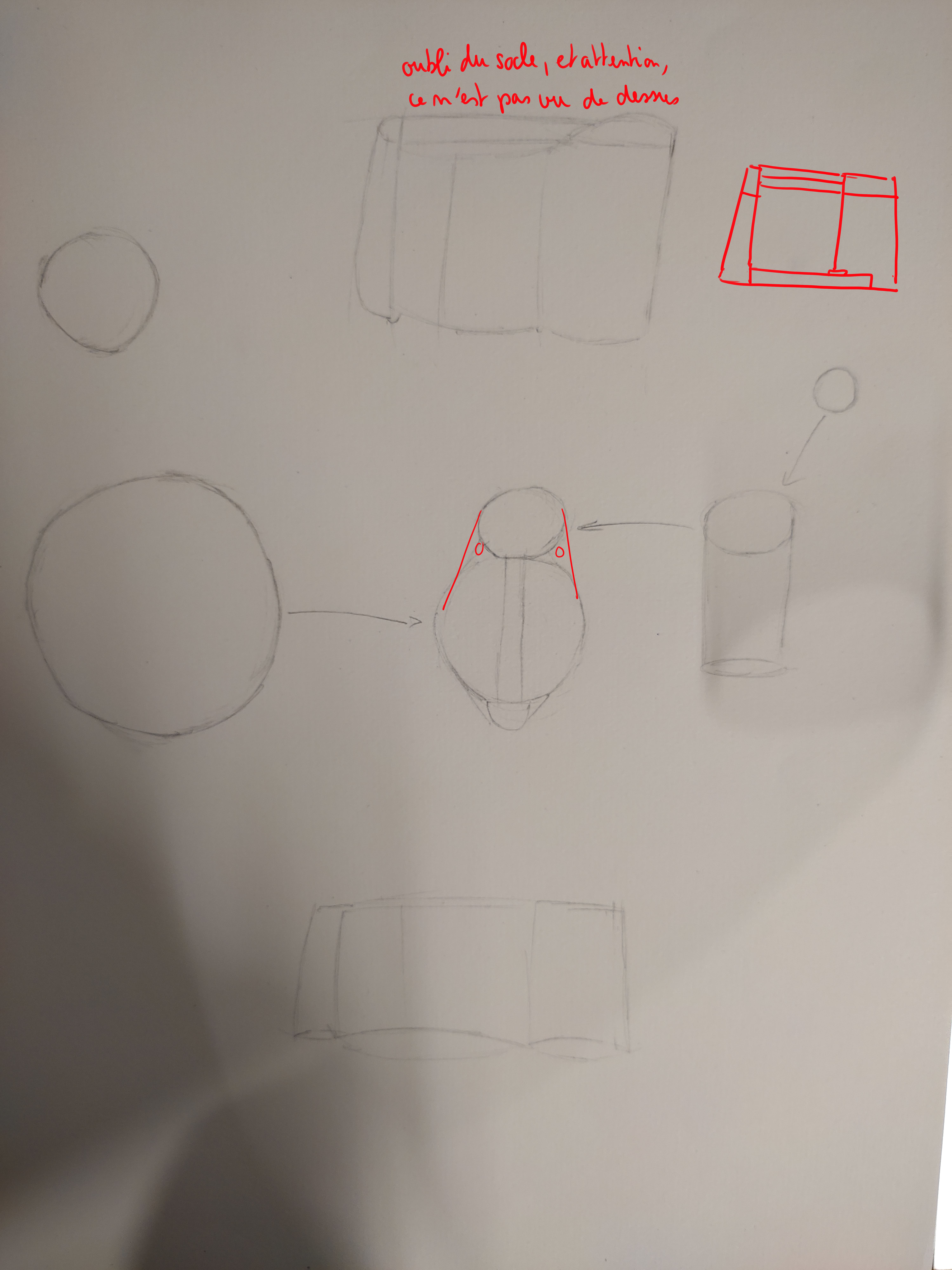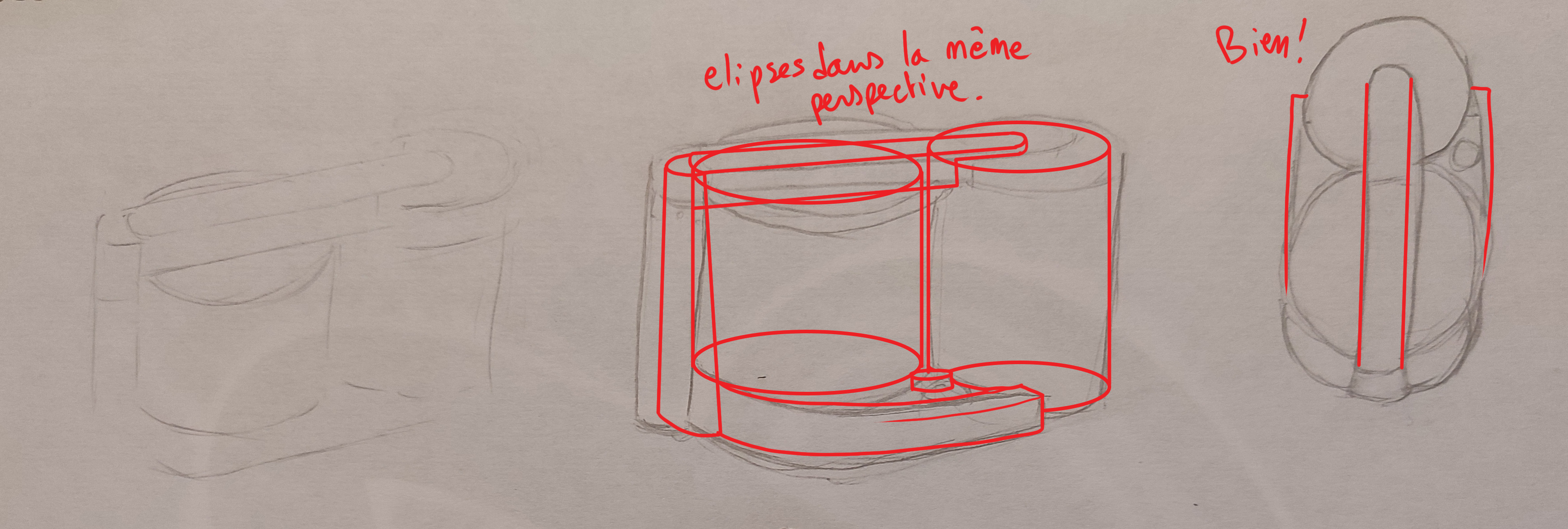 Bonjour Mathildew06, Tu as bien compris l'objet en lui-même c'est bien! Voici ma correction dessinée pour plus de détails. Pour tes petits traits, ne t'en fais pas on en fait tous ^^ C'est le manque d'assurance des débuts, ça s'atténuera avec le temps et l'entraînement.