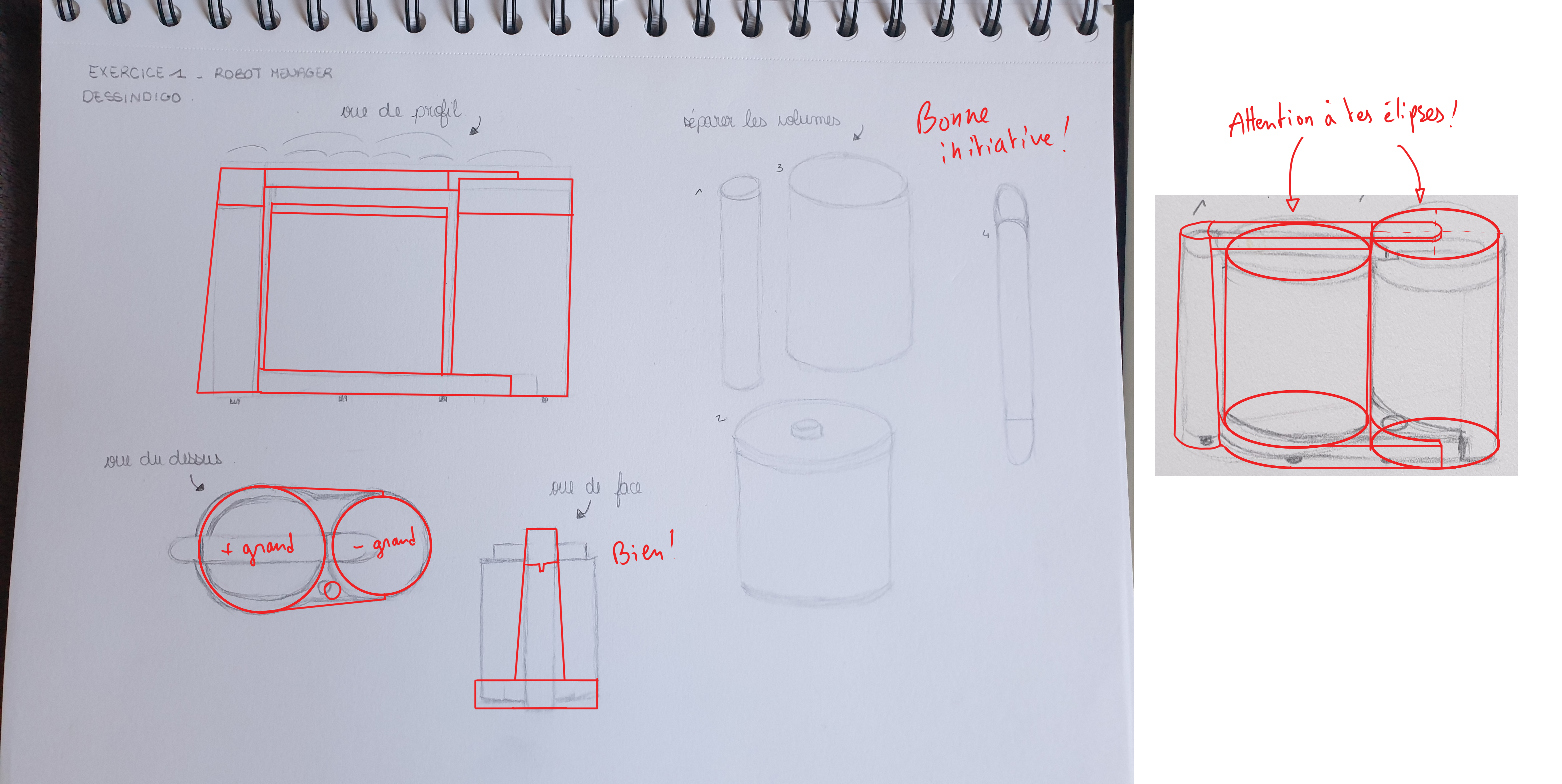 Dans l'ensemble tu as bien compris l'objet, mais je t'ai fait quelques corrections dessinées pour que ce soit parfait. J'espère que ça t'aidera à progresser ! :)