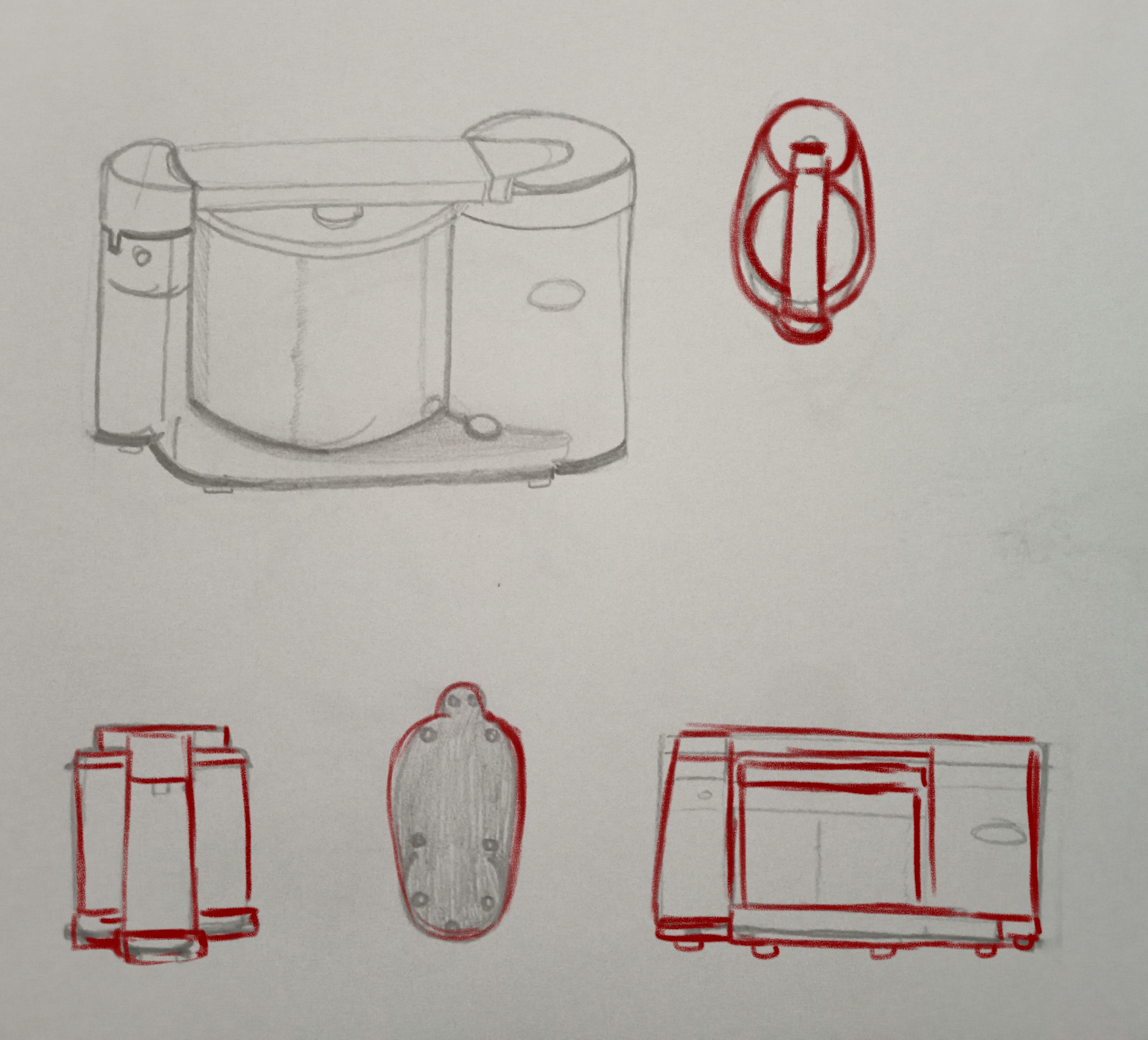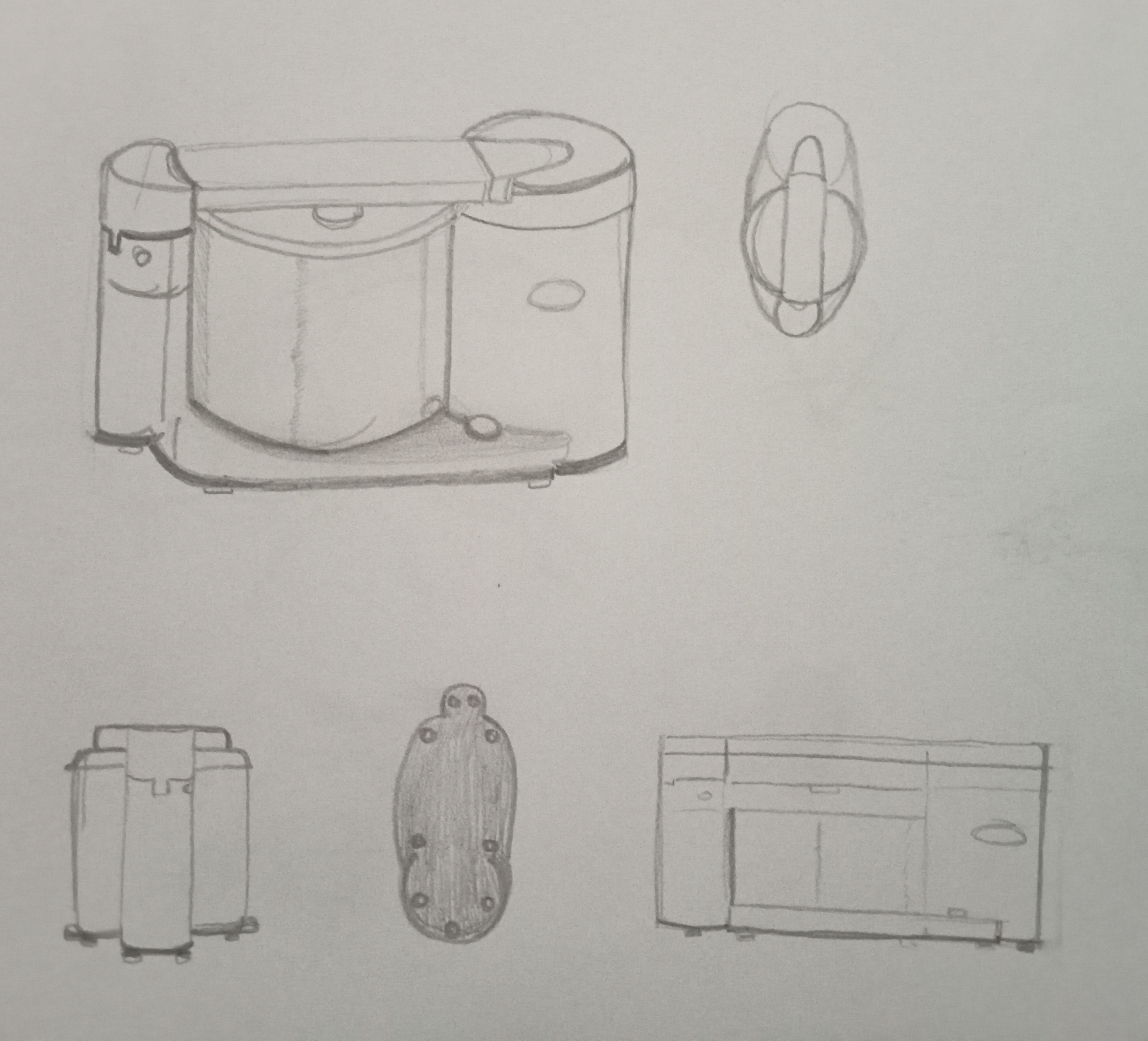 Bonsoir 3feuilles. Courage, c'est déjà pas mal du tout! Par contre, essaie de plus travailler différents angles pour tes dessins (de face, de dessus, de dos, de profil...), quitte à avoir un rendu très plat, très 2D. Le but ici est d'essayer de visualiser ton sujet sous différents angles et d'en distinguer les formes qui le compose. Les vues en perspective ne sont pas obligatoire ici! 😉
