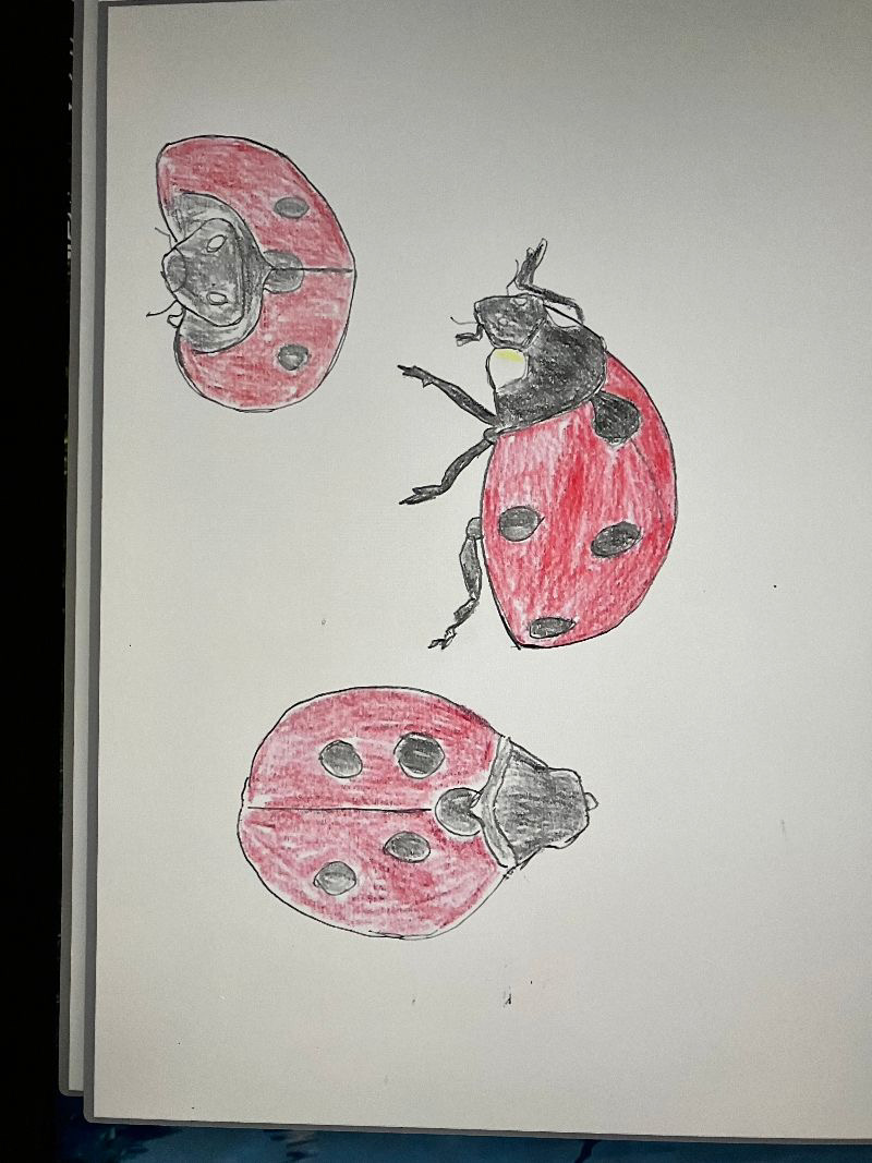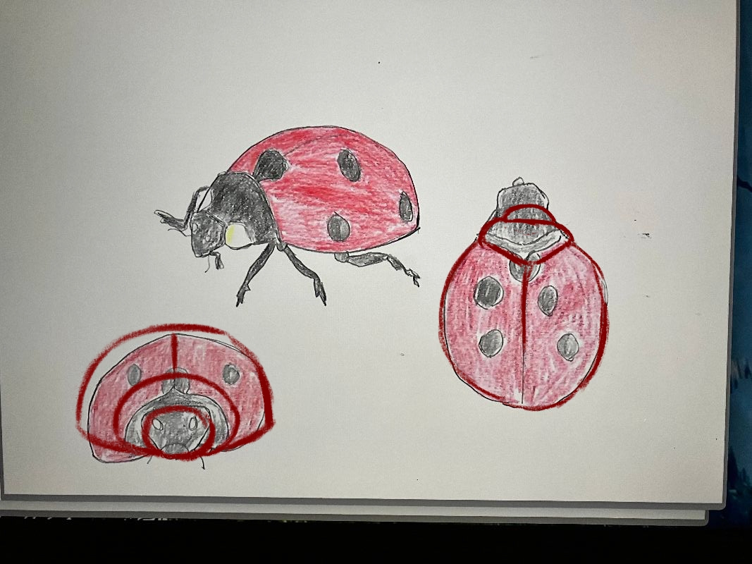 Here is that I did the cocinelle (and some sketch of Guèpe that I made by listening to the course!) I am pretty happy with myself, except for the ladybug seen from above but that's it! good day;)