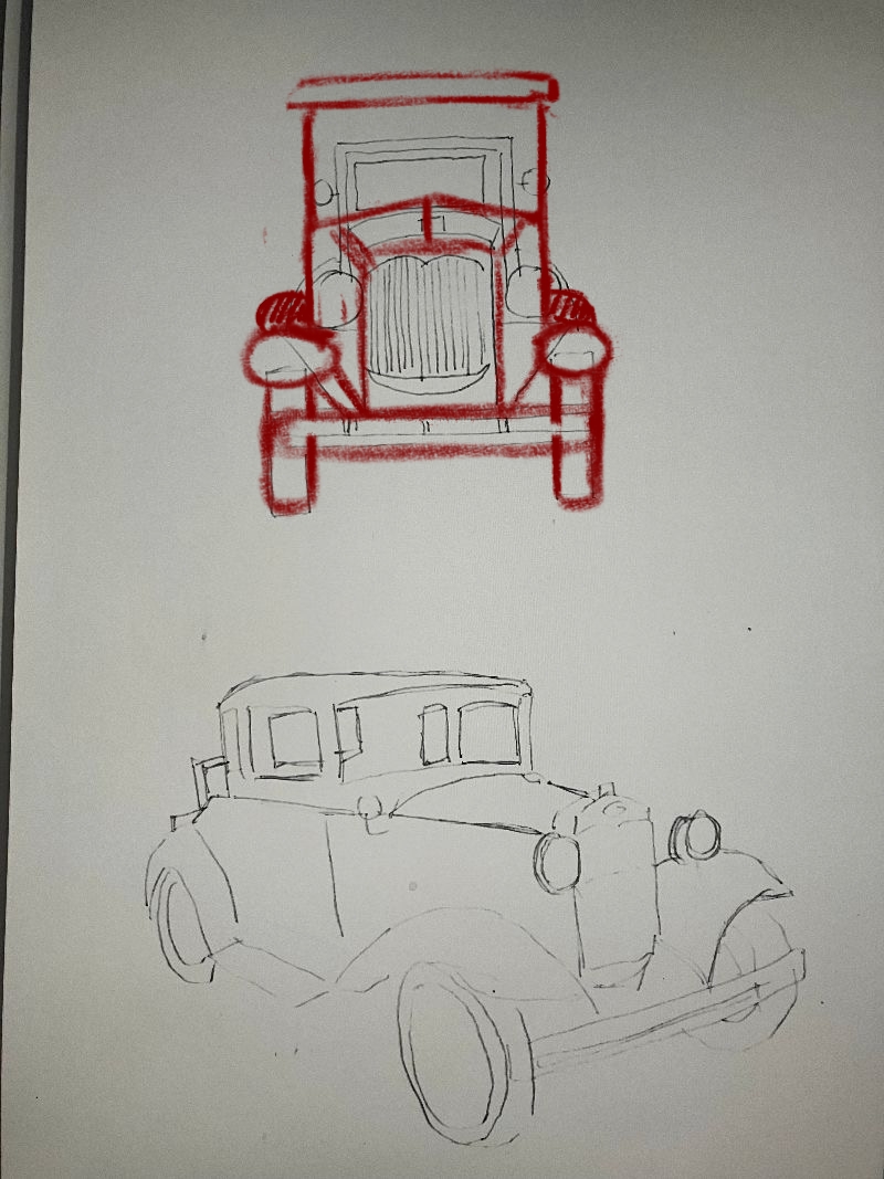 Voici la voiture je pense avoir réussi de face après j'ai jamais représenté de voiture
