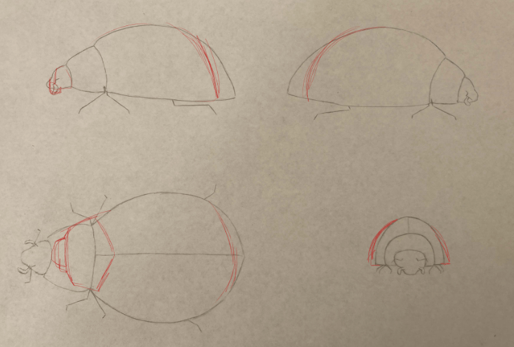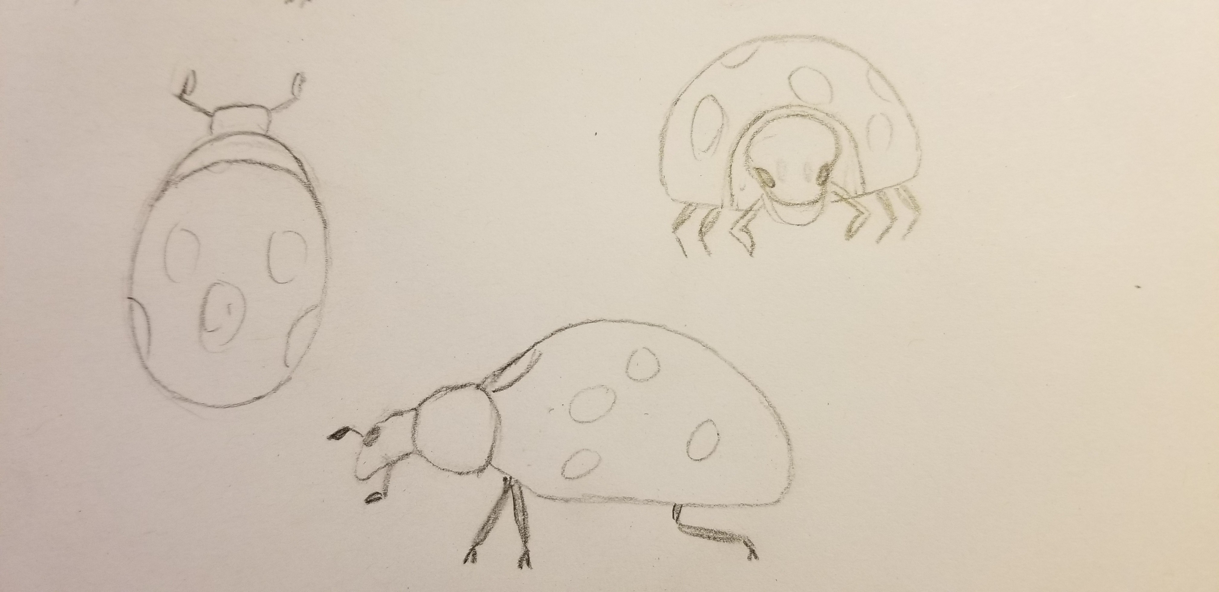 Since not all ladybugs have spots in the same places, I deliberately left these out of my sketches.
