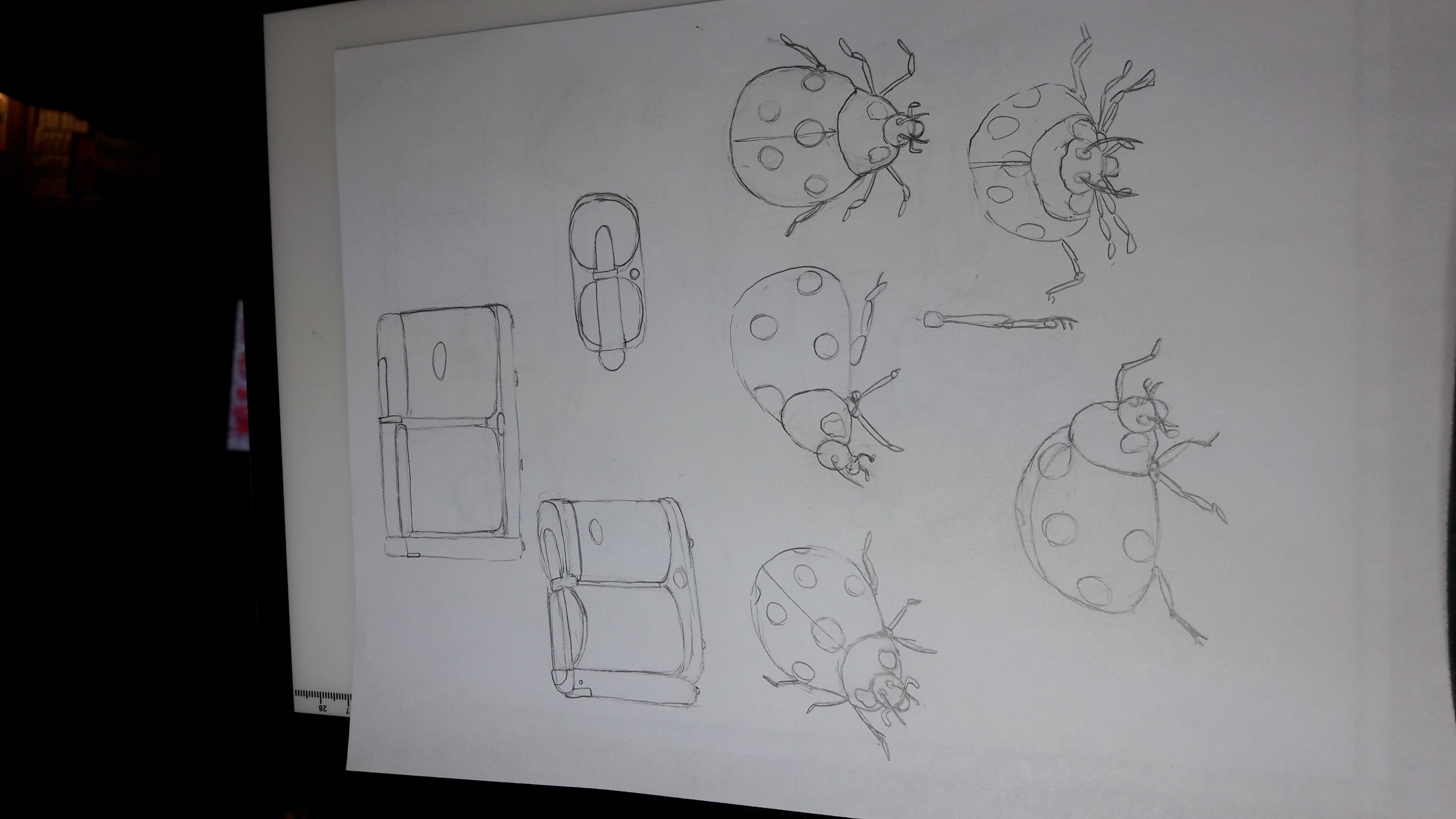 I am sending my sketches for the ladybug (ignore the appliances, it's just that they are on the same page)