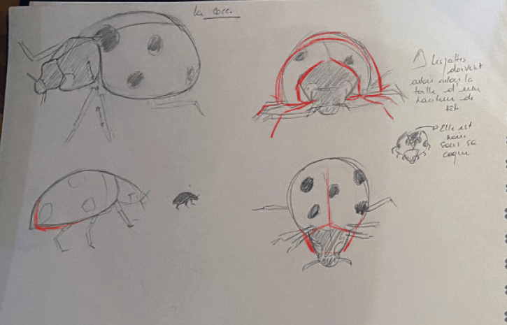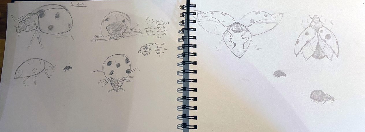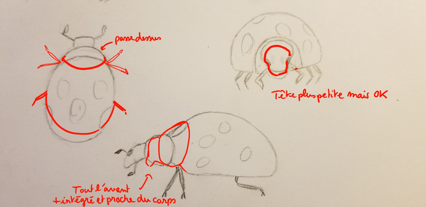 Voici mes croquis de coccinelle. J ai trouvé ca plus dure que le robot , pas toujours facile de trouver les bonnes formes.