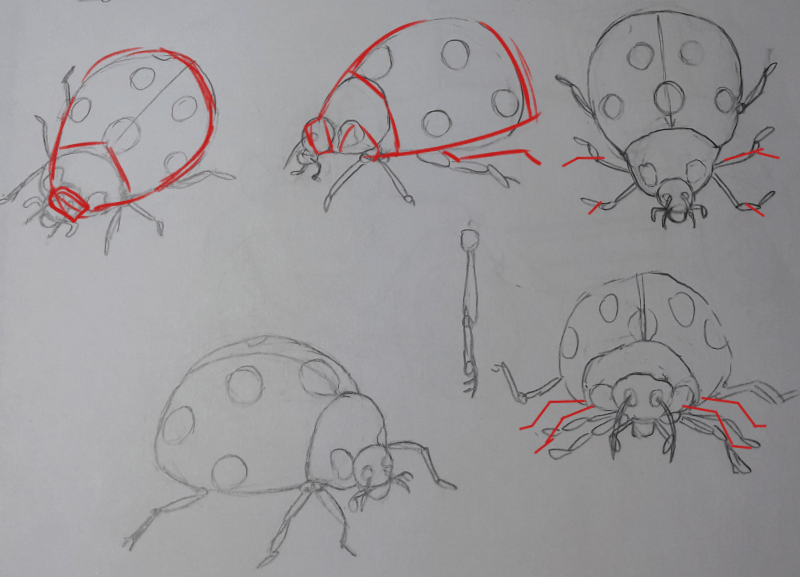 Here are my ladybug sketches. I found it harder than the robot, not always easy to find the right shapes.