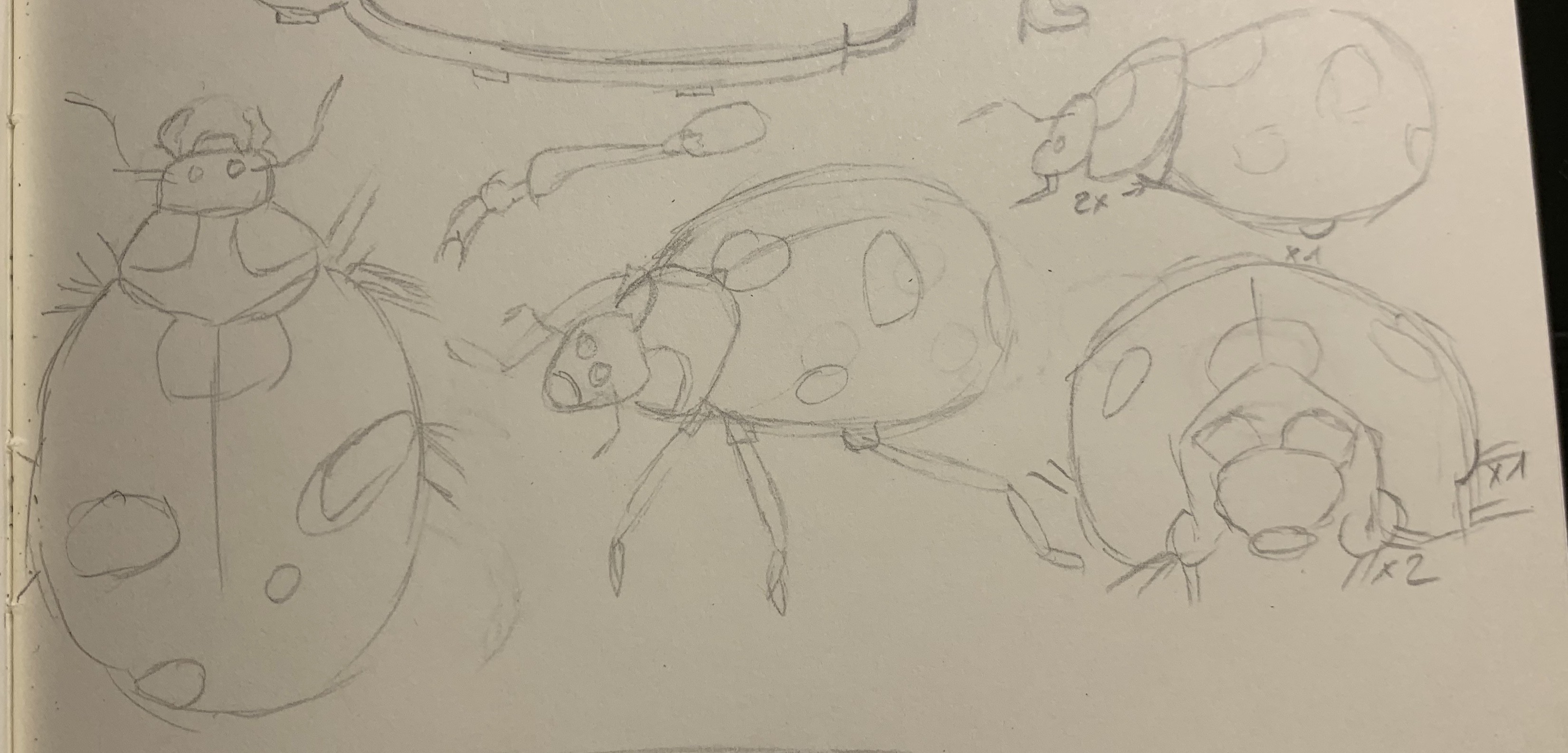 I really wasn't inspired at all by the kitchen robot so I started with the ladybug. I feel like the proportions aren't quite right.