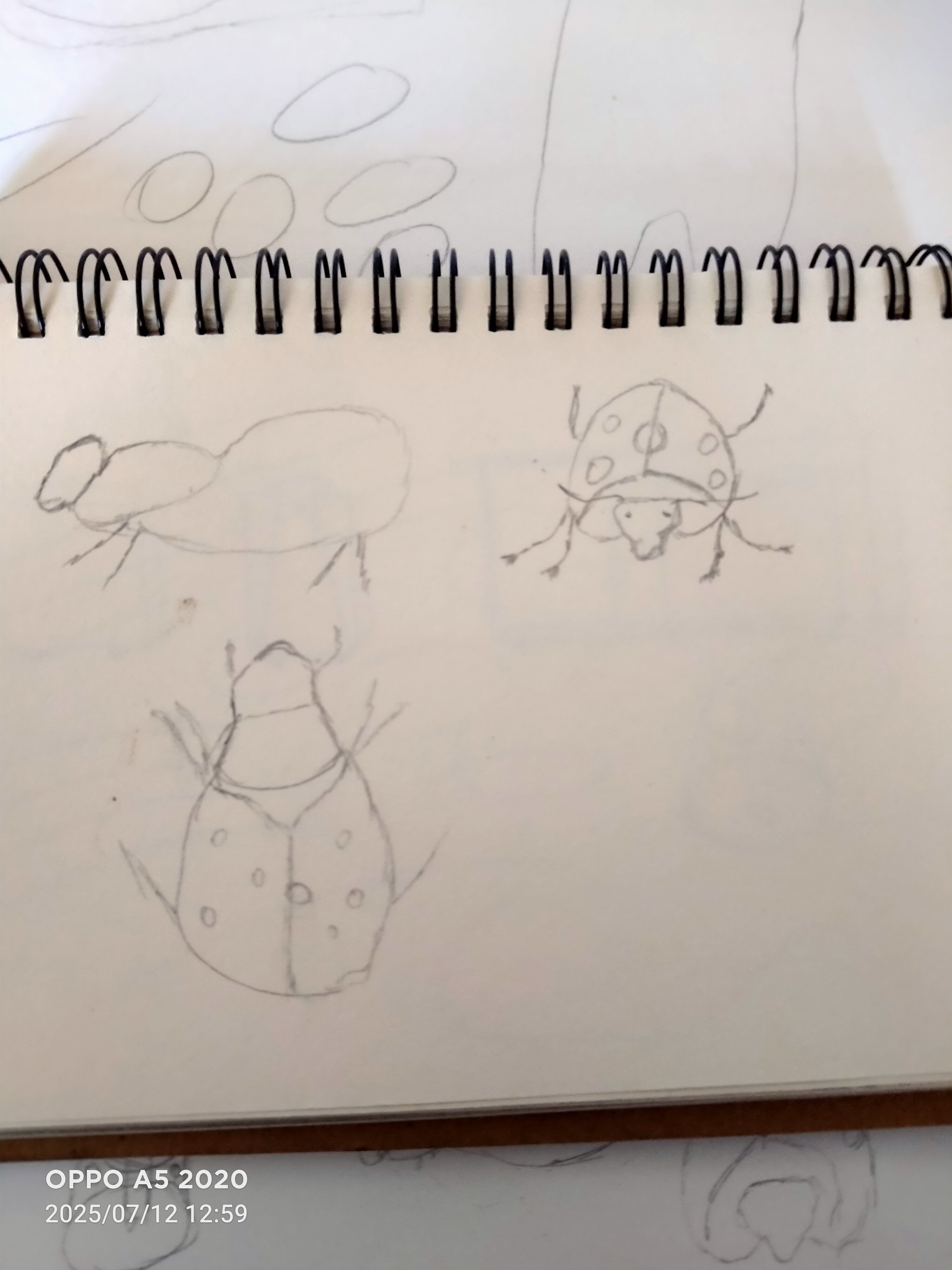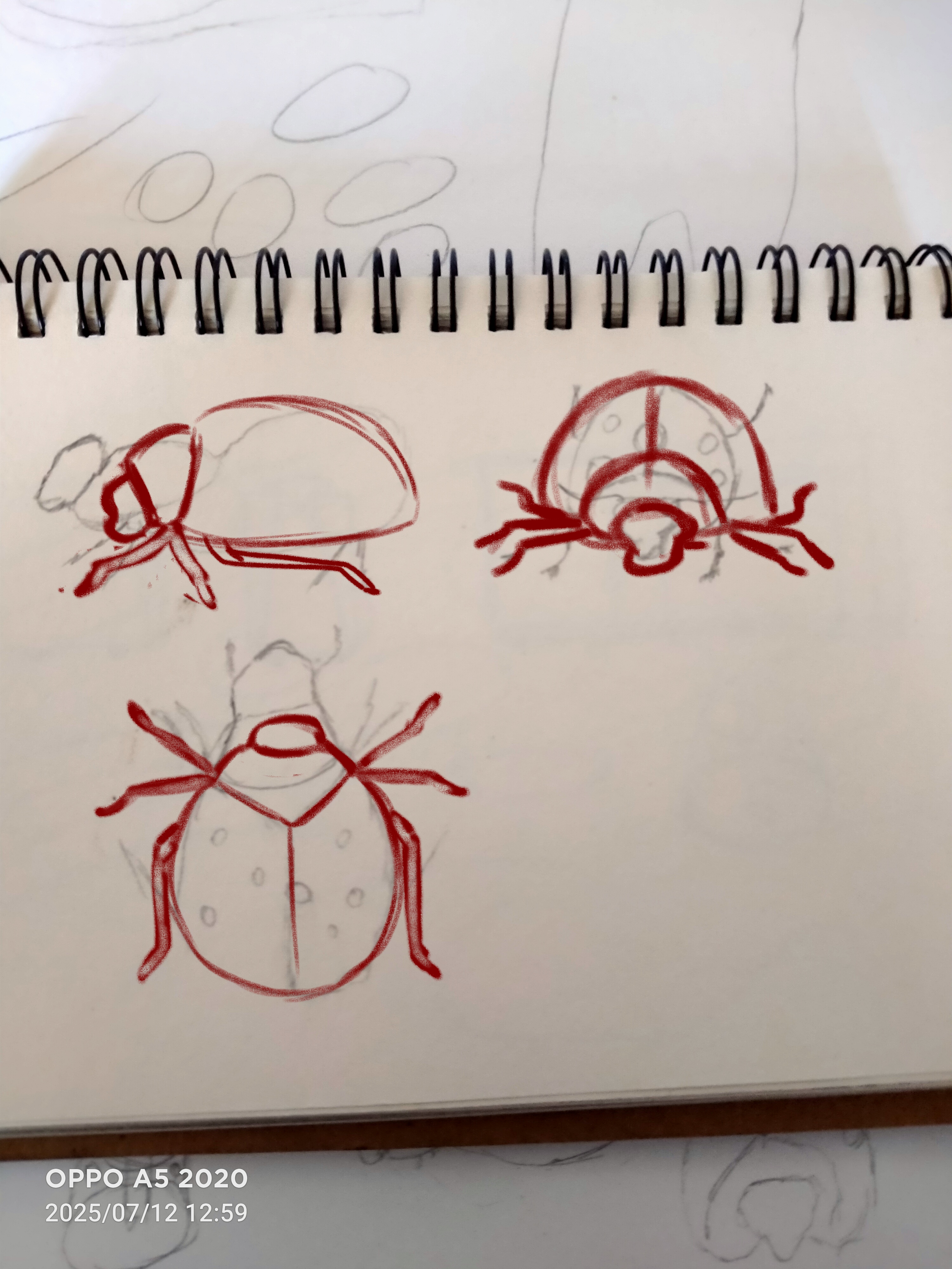 There is a good base, especially on the view from high and front, you managed to retransmit the general roundness :) By cons your ladybug is all flat on the view of profile. The head area is also a little too elongated. Continue to train with observation drawings, it will come quickly 👍