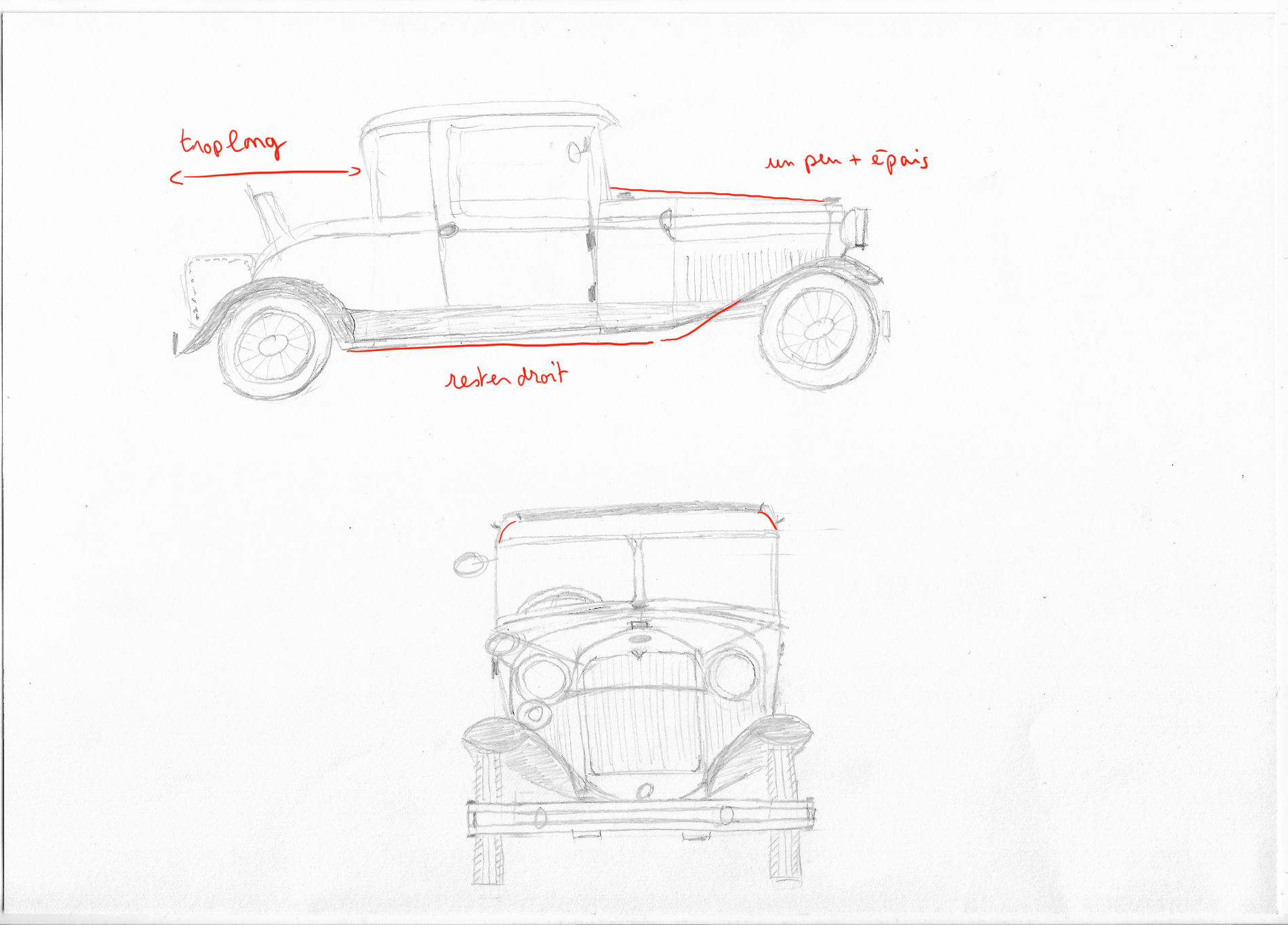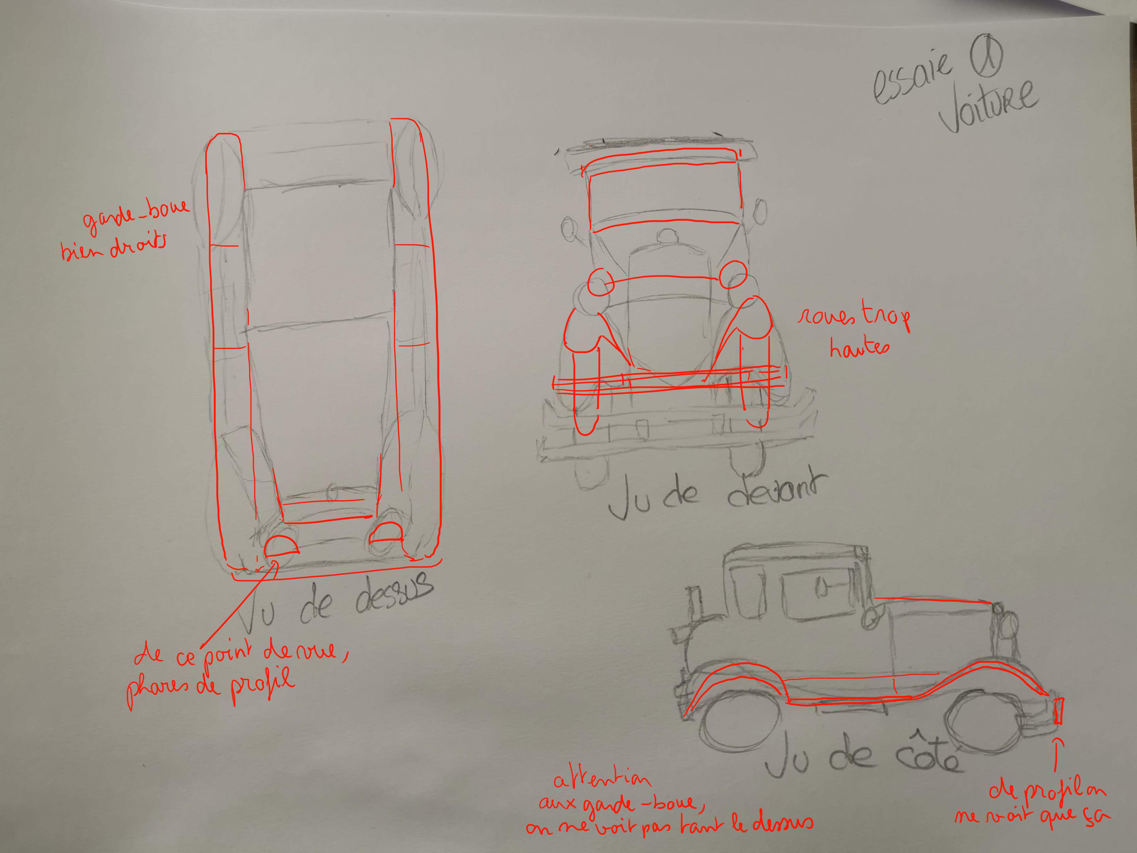 Voici l'étude de la voiture... Pas toujours facile de voir , d'imaginer et réaliser.
