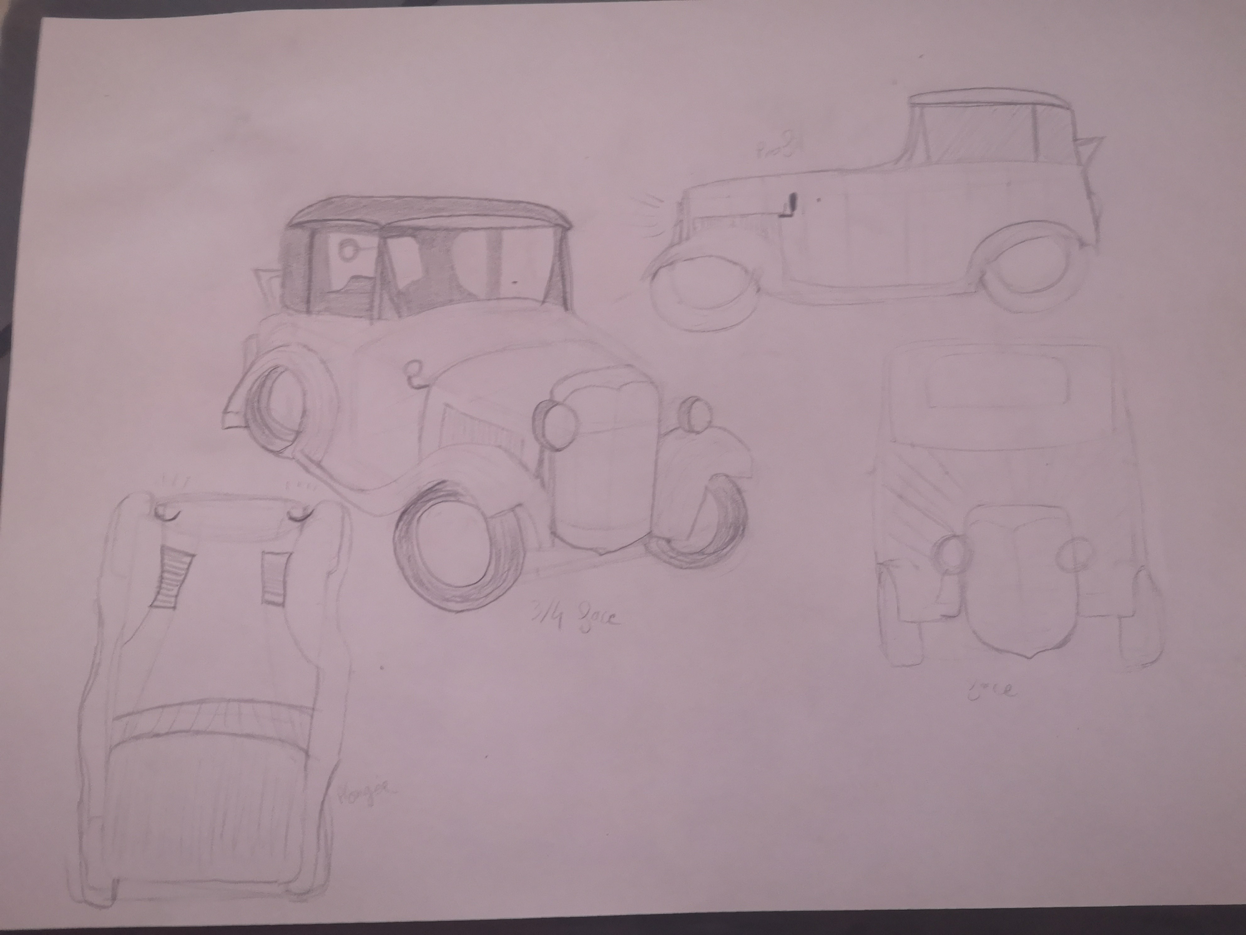 Oh no, I see drawings of all skill levels, and this one is pretty good 🙂 The basic perspective view is good, the wheels are a bit small. The front view is generally understood in principle, watch out the windshield is lower and I've fixed some minor visual issues. For the top view, the fenders are straight and be mindful of the proportions between the cabin and the front of the car. I see 2 other perspective views but that's not yet required for this exercise since perspective hasn’t been covered yet. And a car isn't the easiest subject to start with. It will be better addressed in the upcoming lessons 🙂 Nice work overall!