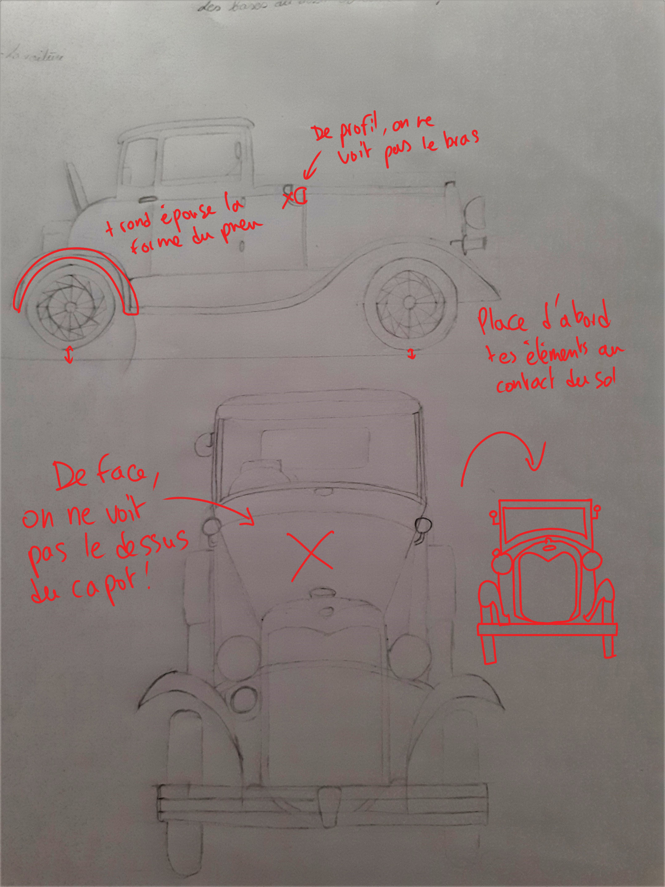 Ok, pour les corrections. C'est pas évident les roues dans la perspective ! Avec ta correction directement sur le dessin on voit bien nos erreurs !