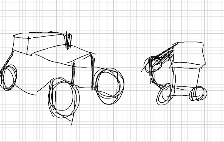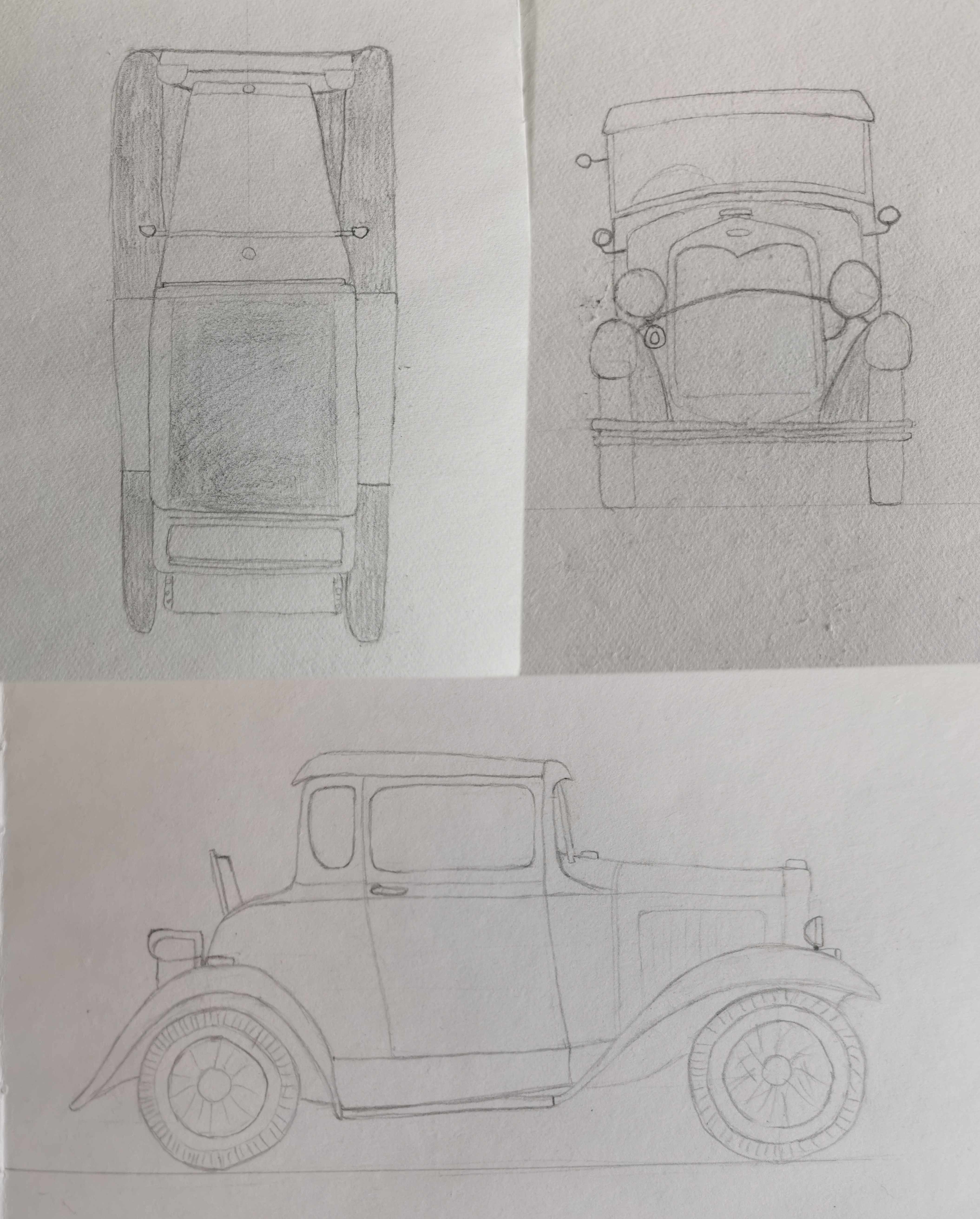 here are my attempts! Really not easy, I think I made the hood too short, and the placement of the headlights was a real challenge. In any case, it's a good exercise.