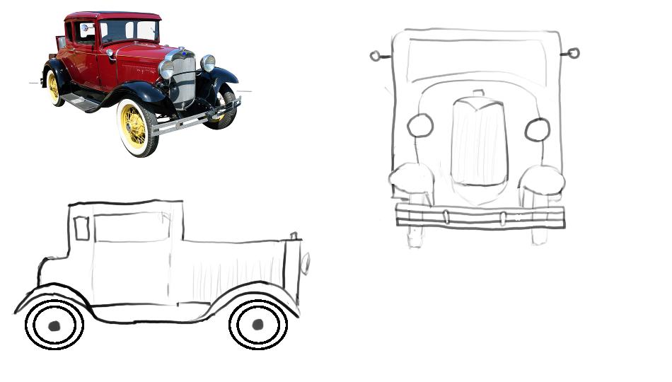 Think of your car as several simple volumes that fit together. Put them in perspective...
