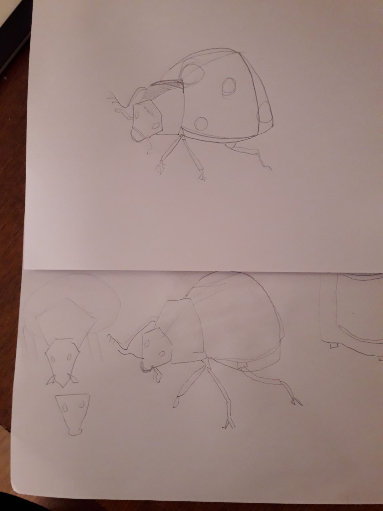 Here are my 4th (top) and 3rd sketches of a ladybug.