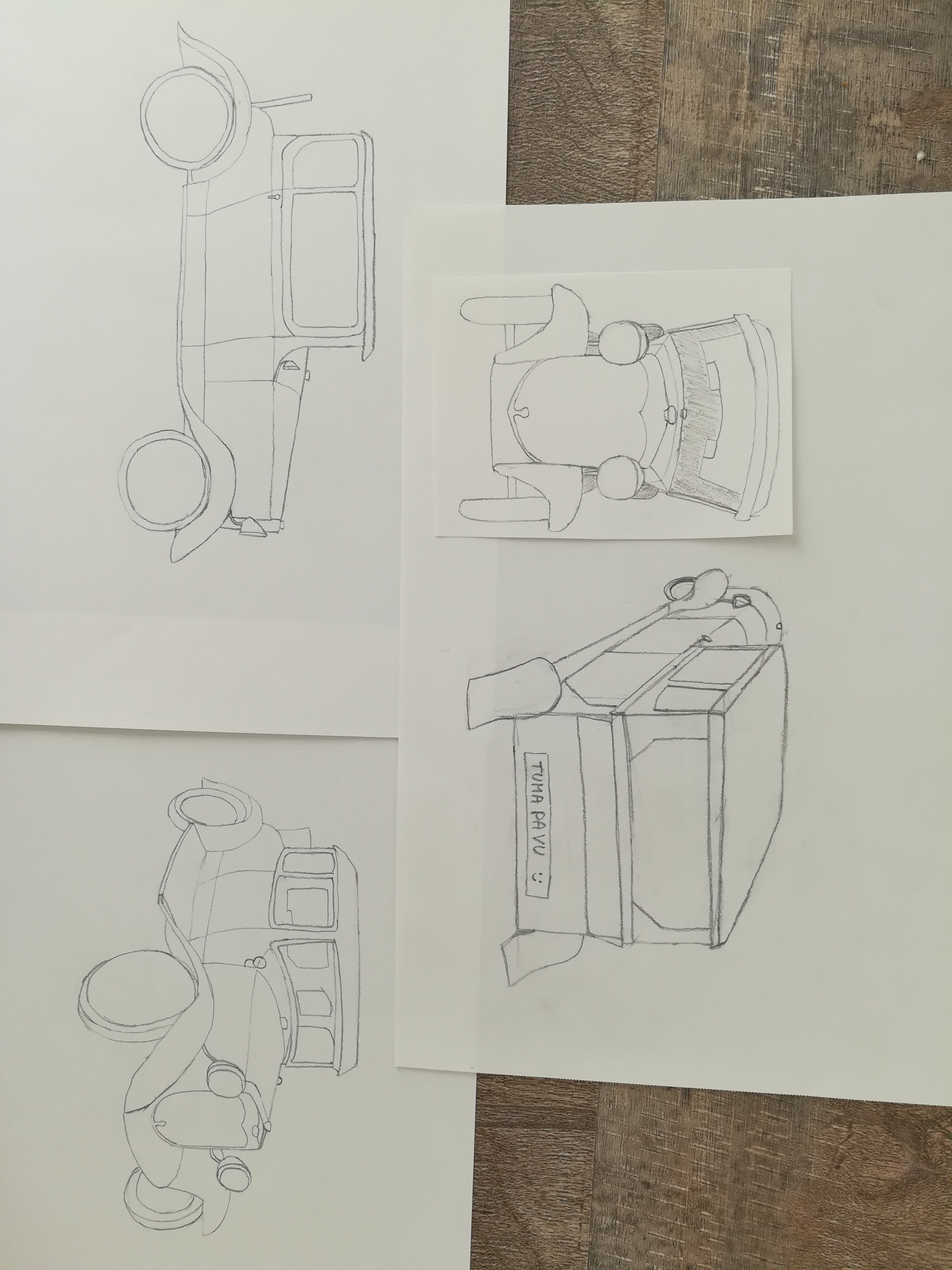je doute beaucoup sur mon imagination .. les vues que j'ai dessiné : avant, arrière, et vue de haut correspondent-elle à ce robot ?