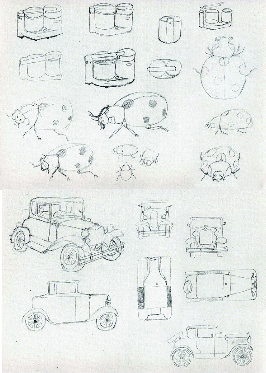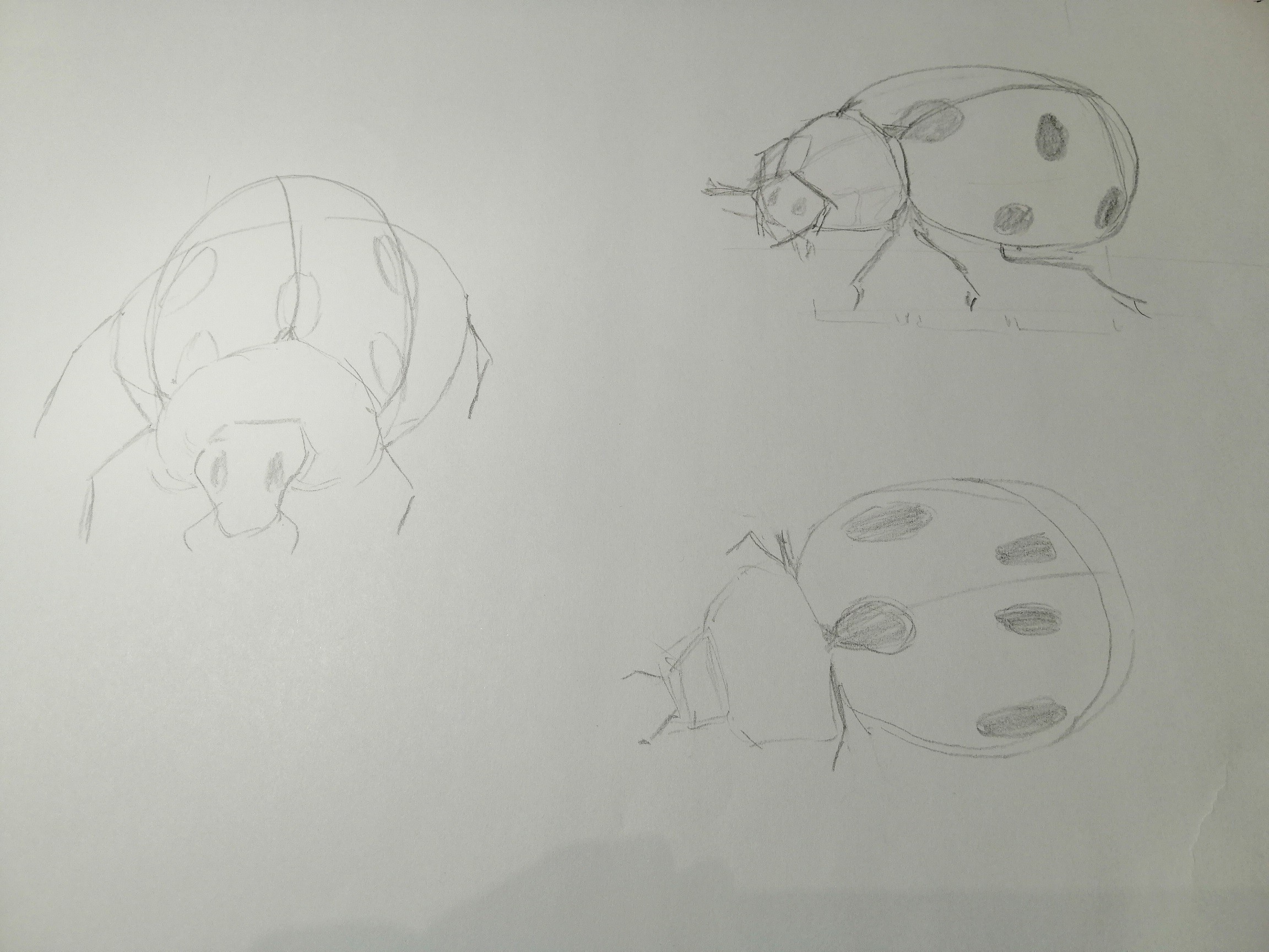 It went better with the ladybug. Then there was the car... and there you go, I can't draw a wheel. Yet that wasn't my biggest worry.