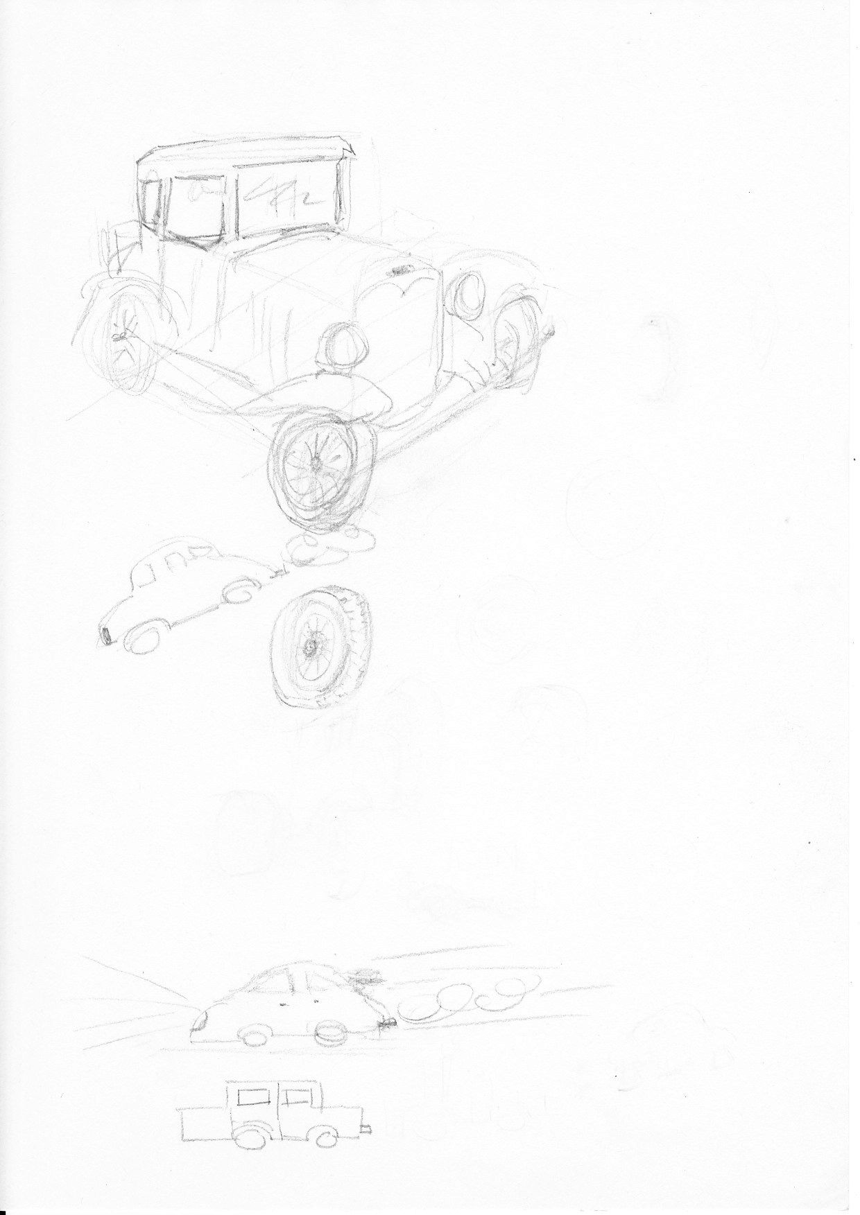 Ça s'est mieux passé avec la coccinelle. Puis, il y a eu la voiture... et voilà, je sais pas dessiner une roue. C'était pourtant pas ce qui me faisait le plus de soucis.