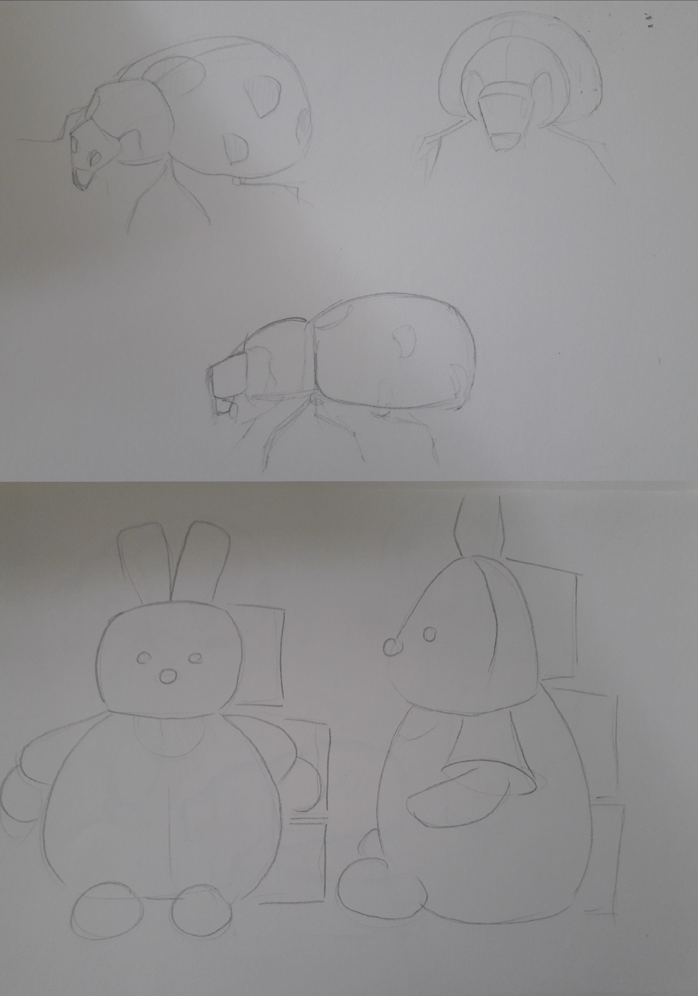 so here I am new to this site and I would like to know if I understood the exercise correctly. Here are some drawings from the image of the ladybug and then from a real plush toy.