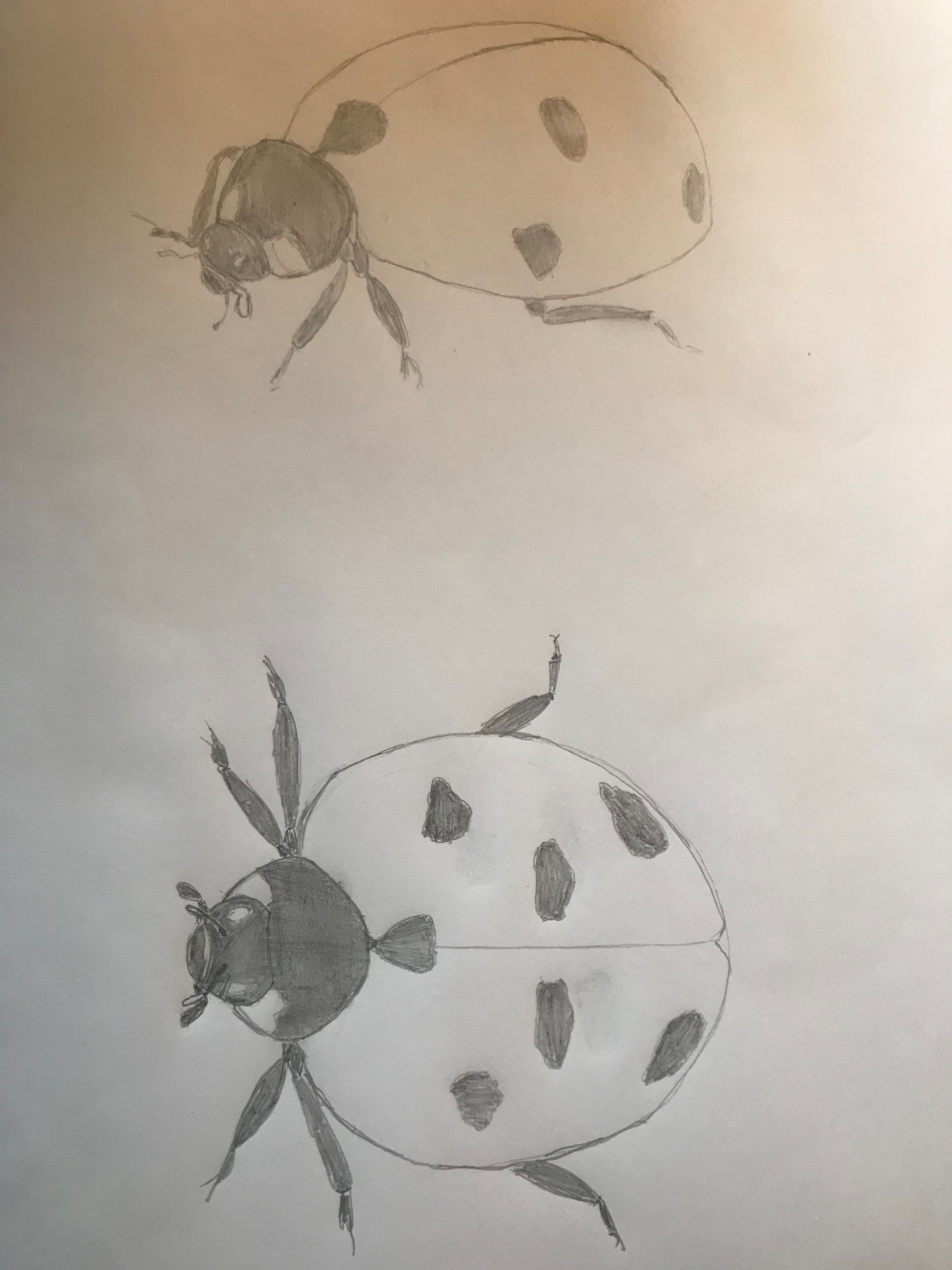 I made the ladybug and then I saw the corrections afterward. Rather than copying the corrections, I preferred to take other objects. Here they are: ladybug, smartphone, iron, and French press.
