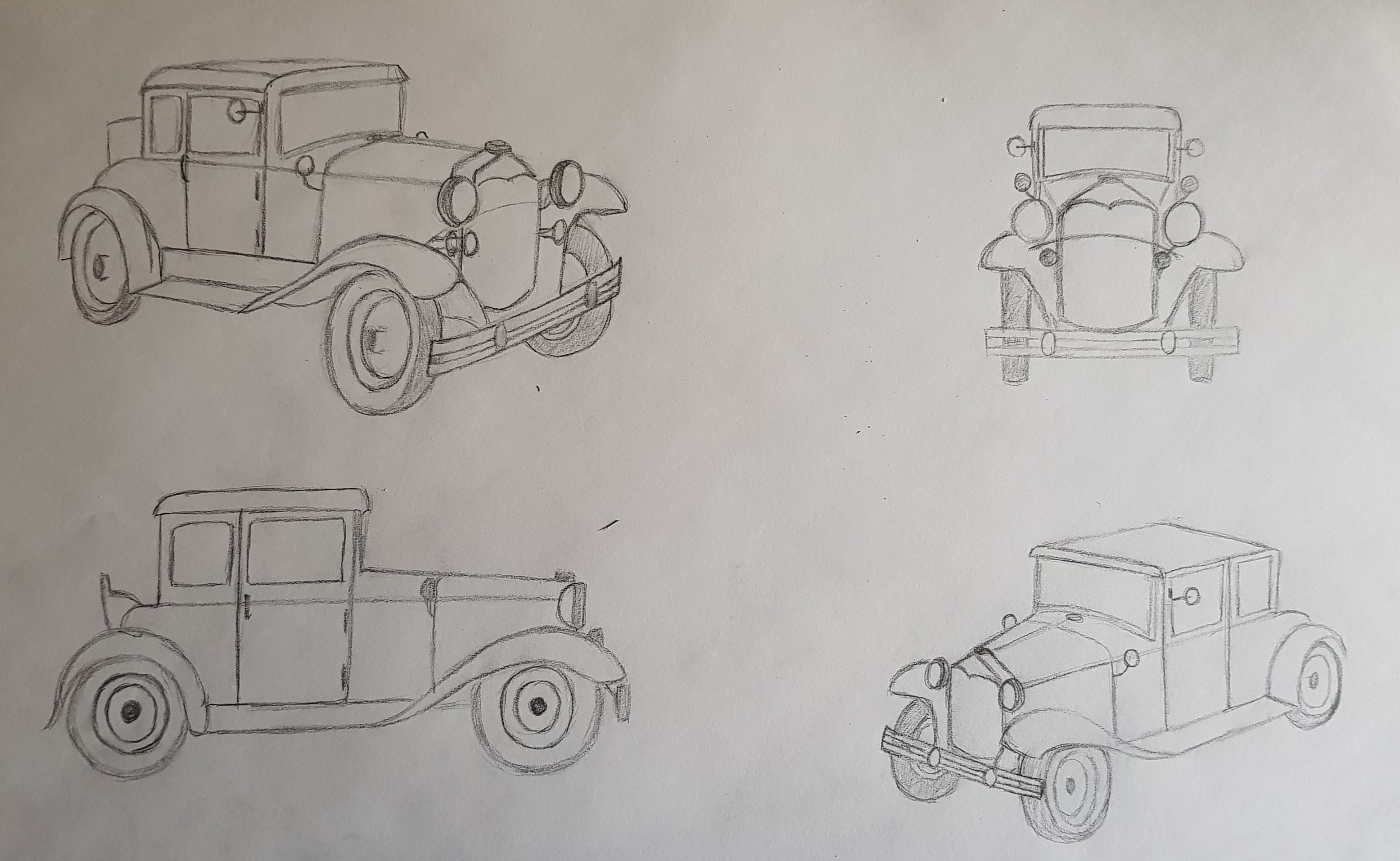 Cela mis de côté, tu as bien réussi la voiture je trouve. Je t'enjoins à essayer de refaire un exercice de ce style en faisant bien attention aux détails et en prenant bien le temps d'observer ton modèle :)