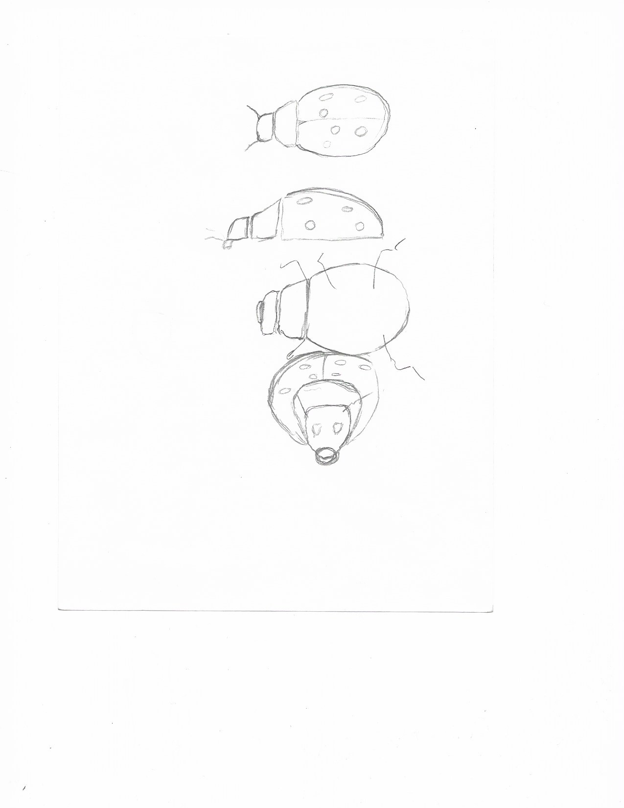 I encountered a problem with the ladybug viewed from above. The legs... I don’t know how to handle the depth. The legs seem very small... it bothers me. Is there a solution or should we prefer another view for the drawing?