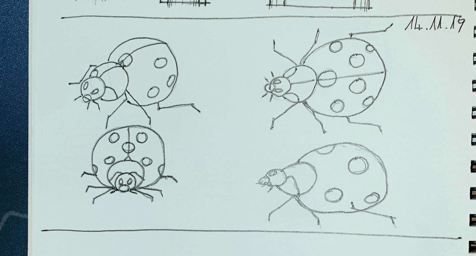 The ladybug is not bad, except from the front and side views (the underside of a ladybug is flat, not rounded), but it is clear that it is the same in the different views.