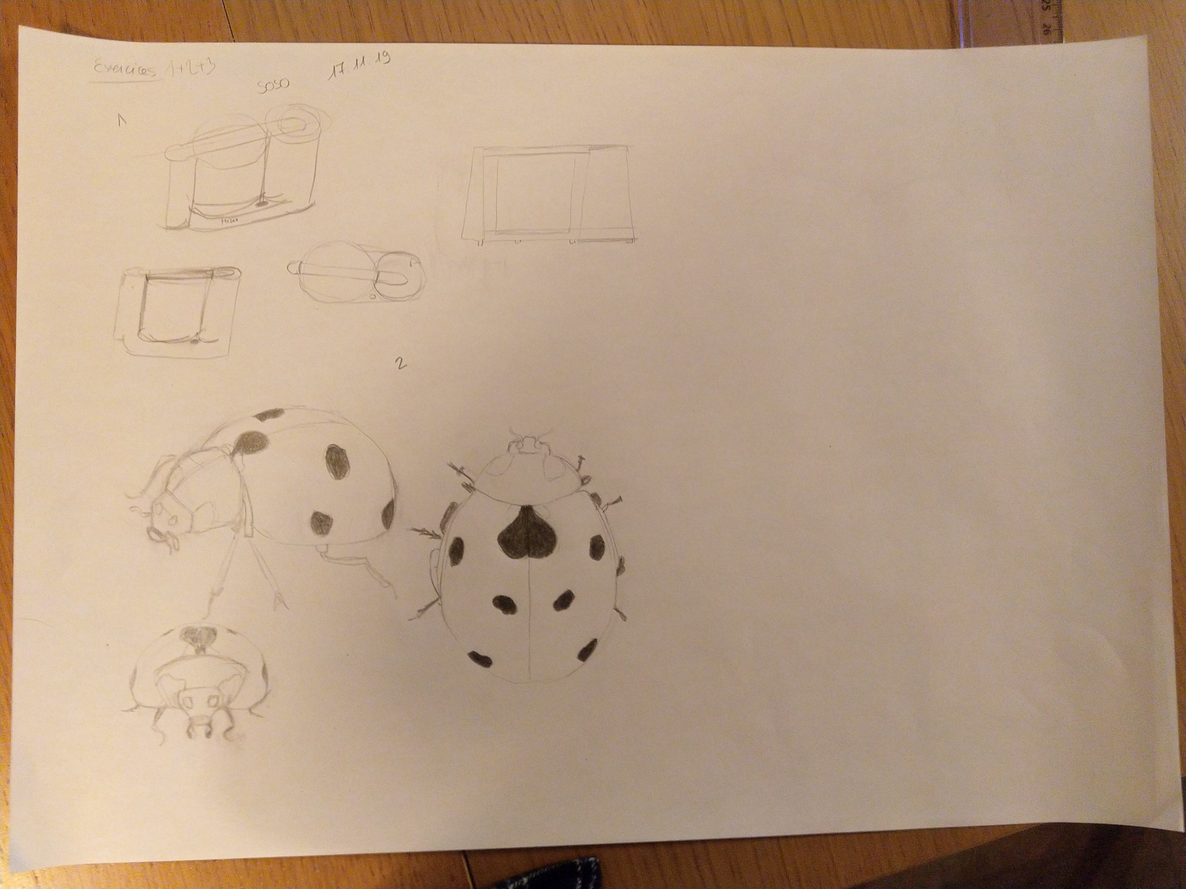 Here are my drawing assignments. Not easy at all for me, as I almost only draw abstract (precisely because I am not comfortable with the concrete). I would gladly welcome some feedback.