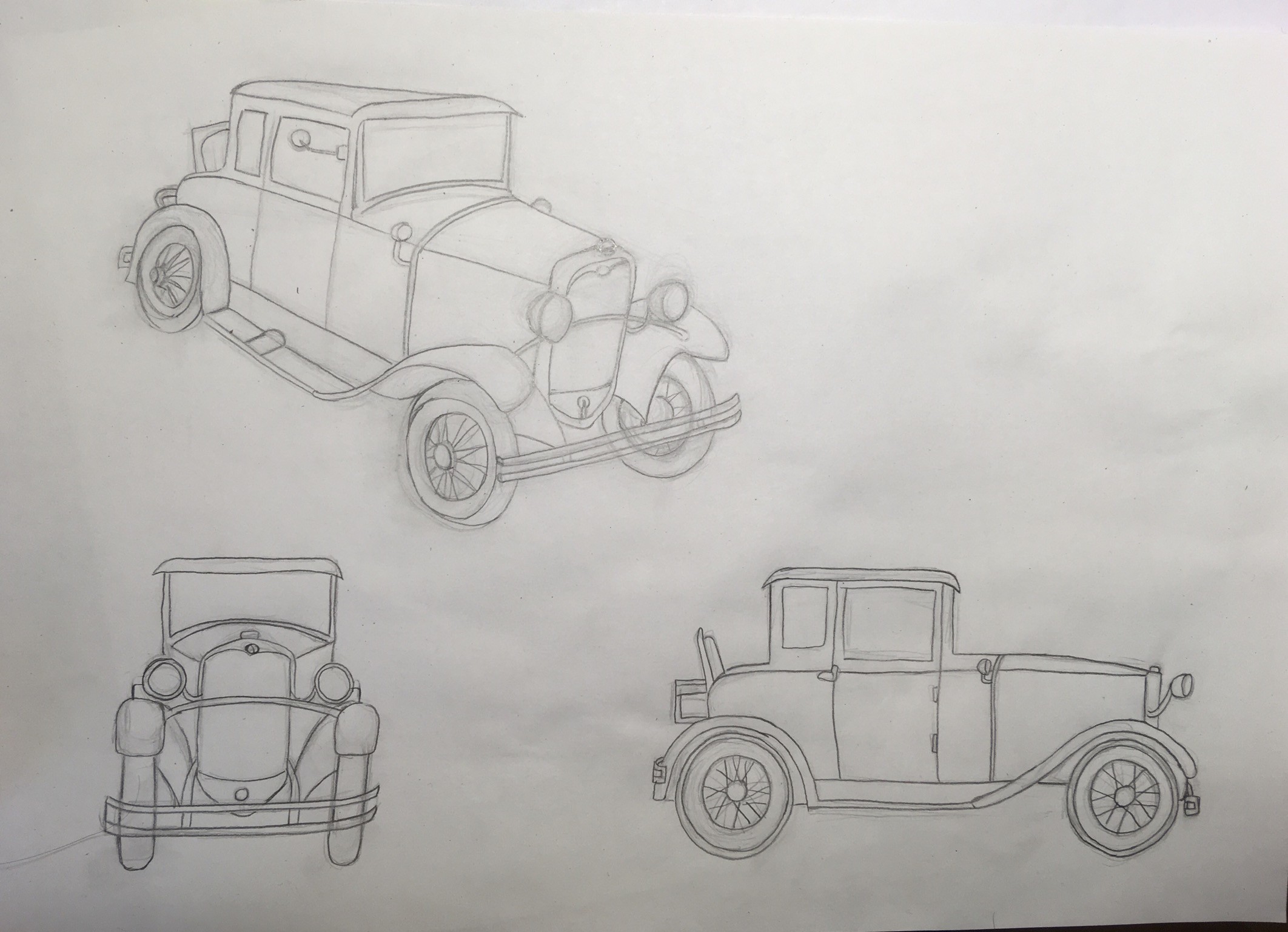 Here are my 3 drawings... the car was really not easy. What do you think of these and do you think I can move on to the next exercise without reworking this one?