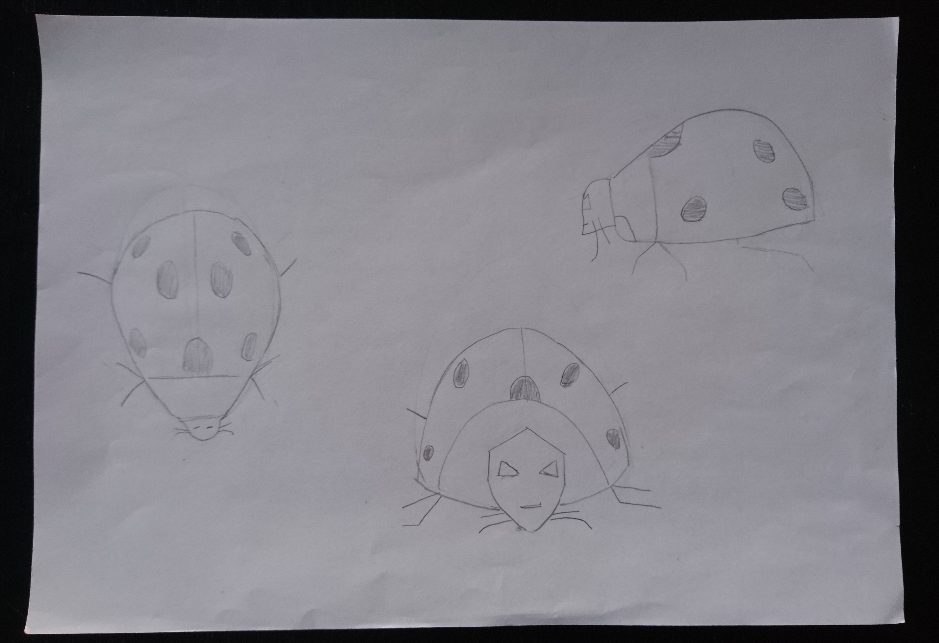 The first two exercises are good, you did really well with the ladybug :3