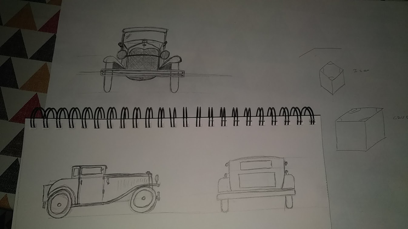 Voici donc mes 3 dessins.. la voiture n'a vraiment pas été simple. Que pensez vous de ceux ci et pensez vous que je peux passer au prochain exo sans retravailler celui ci ?