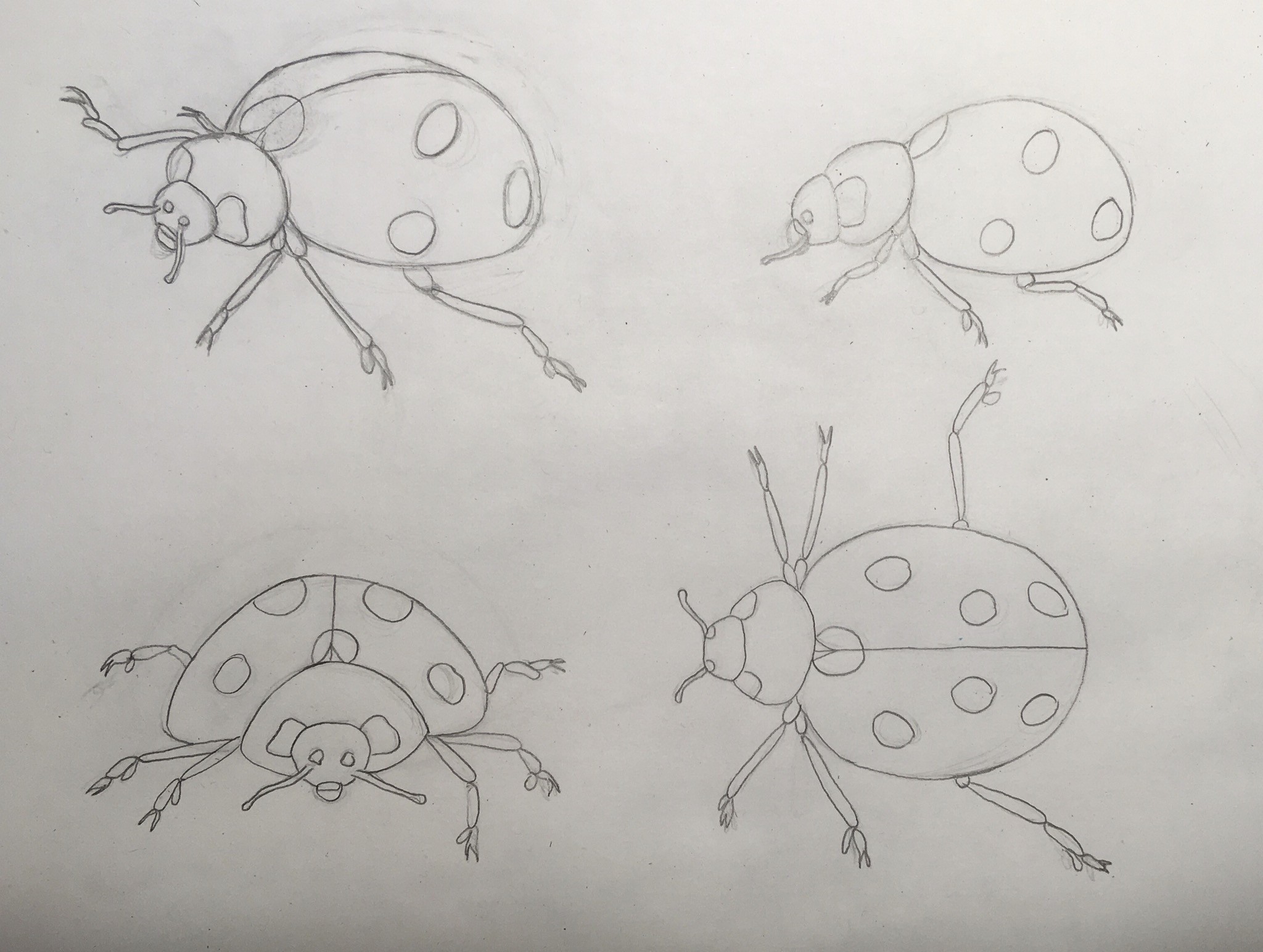 Indeed, the ladybug transforms with each view, notably in terms of the head (and the position of the hind legs from the front view).