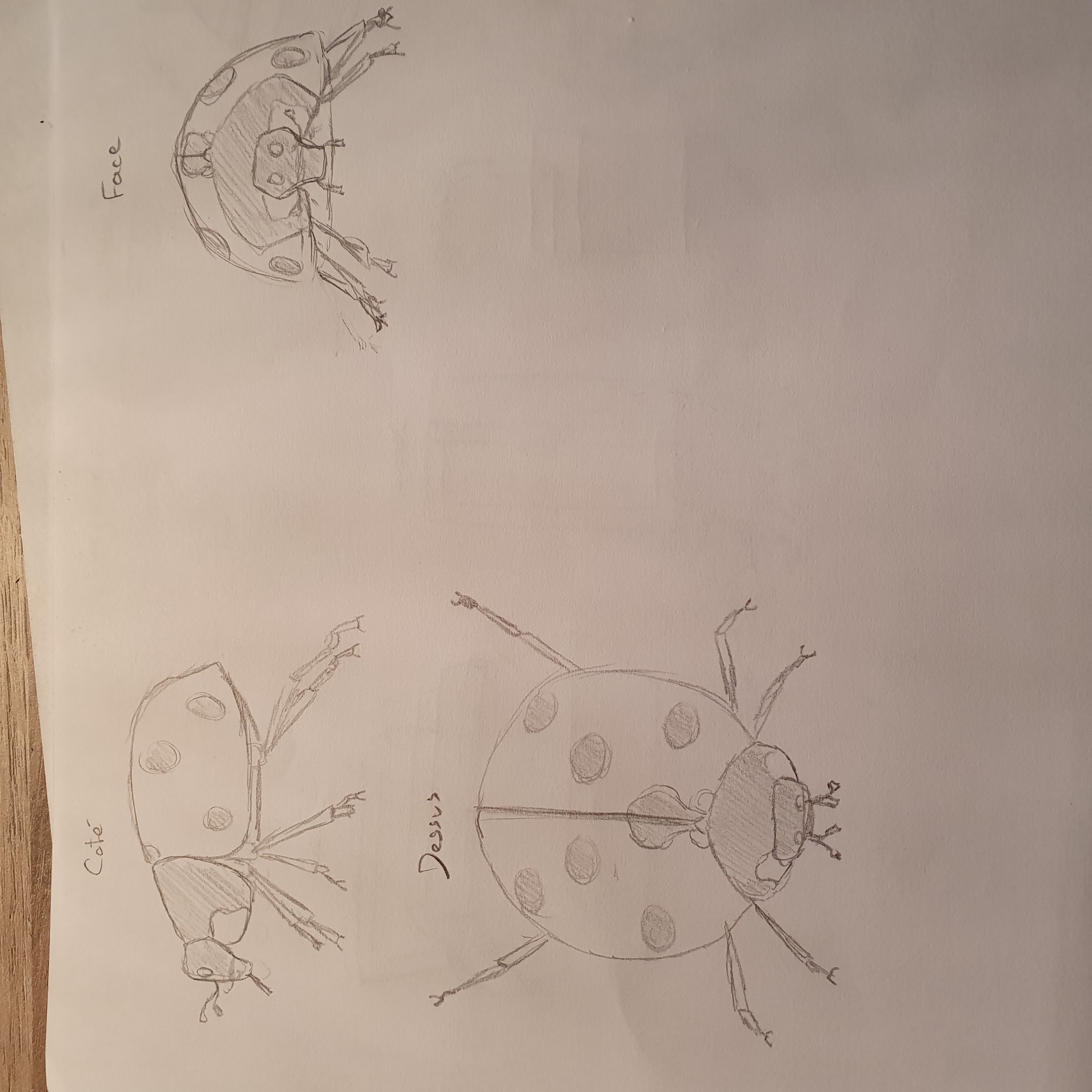 Voila la coccinelle, je la retravaillerais je trouve qu'il y a trop de problème mais bon je la poste comme sa quand même pour avoir les avis et critique, juste pour dire la face du dessus est faite avec l'outils de symétrie de Photoshop.