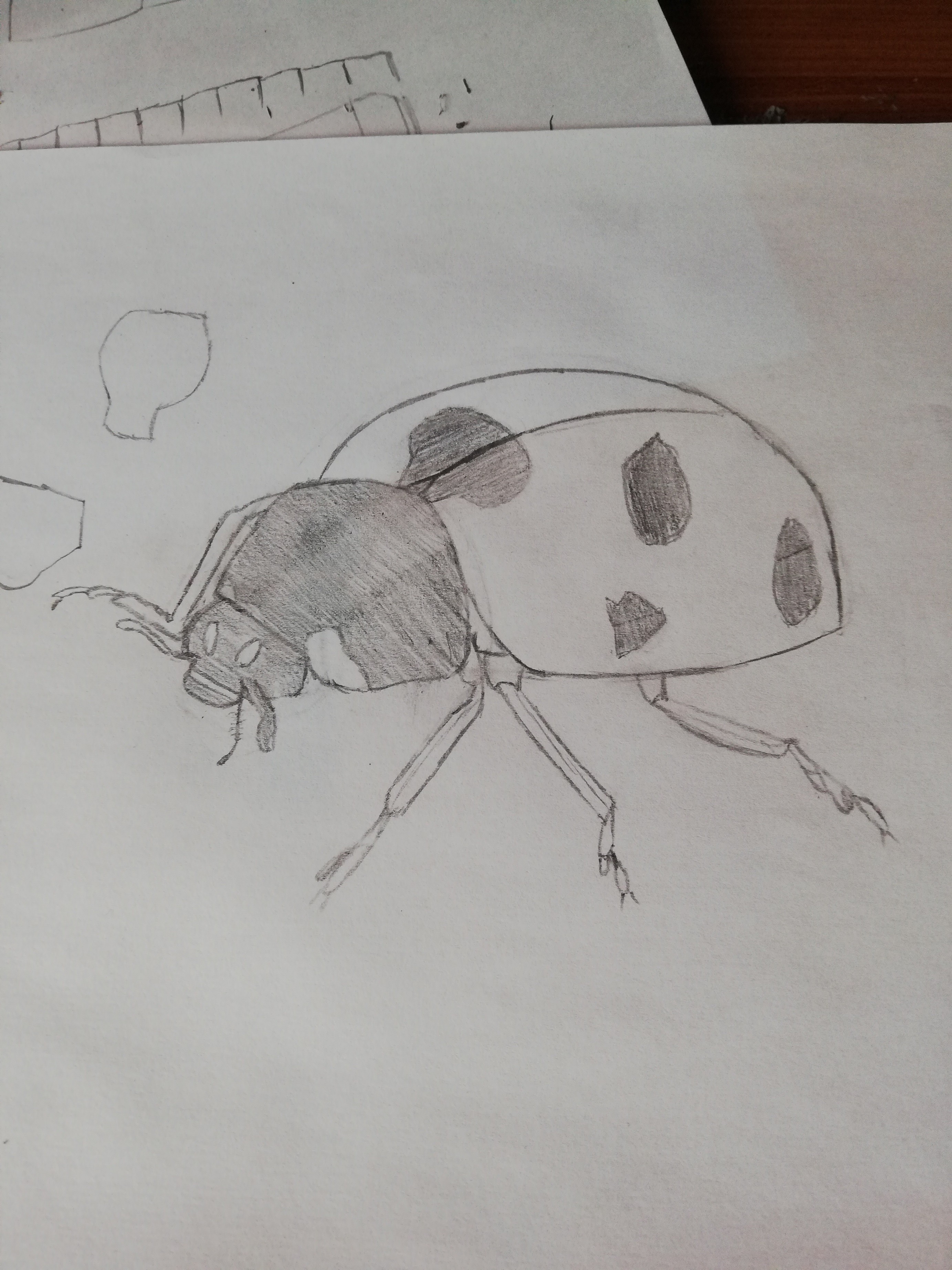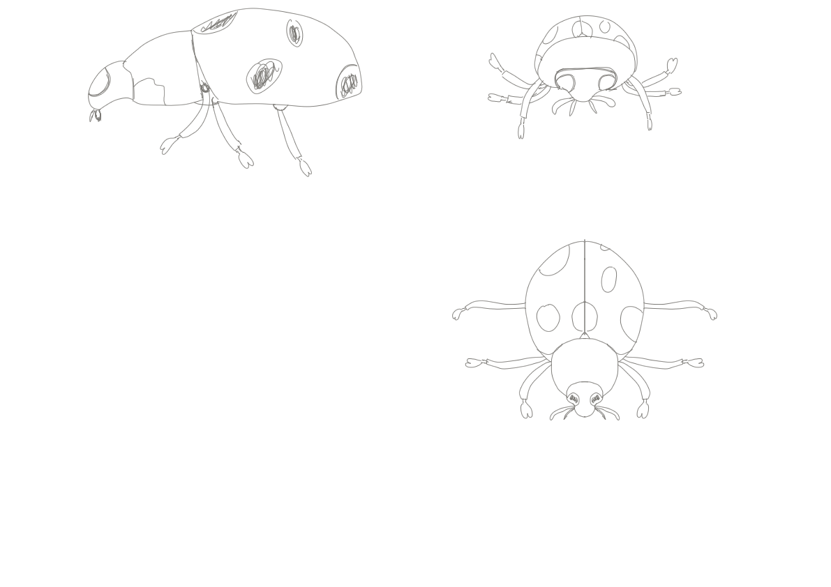 Here's the ladybug, I will rework it because I think there are too many problems, but I'm posting it as it is anyway to get opinions and critiques. Just to mention, the top face was made using the symmetry tool in Photoshop.