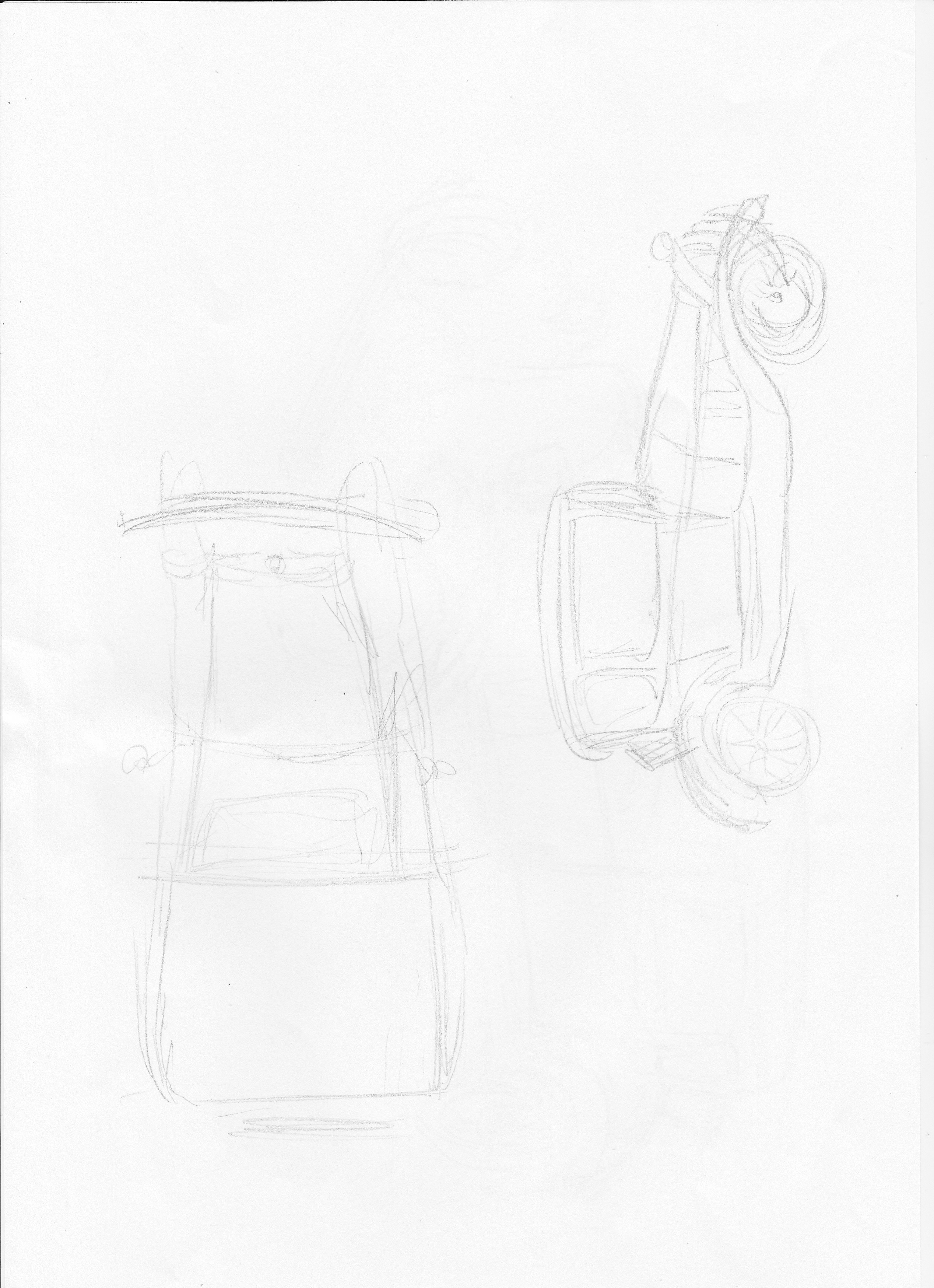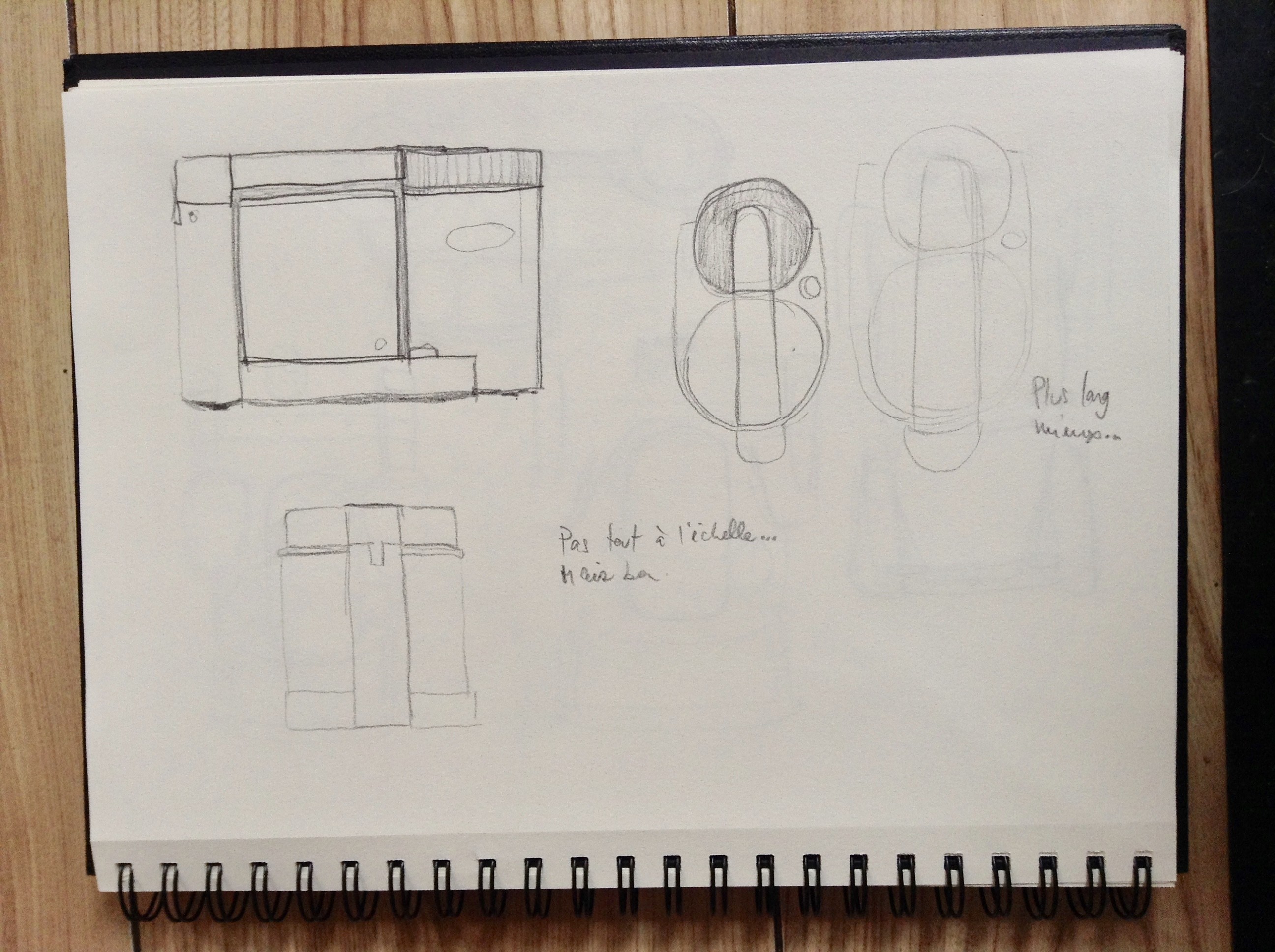 Voici la machine, le thème ne m'a absolument pas passionné, je ne m’intéresse pas aux objets, du coup je ne les ai jamais autant regardé ! très intéressant cet exo ! le dessin du haut je l'ai fait à l'oeil, celui du bas avec regle, je ne m'en sortais pas. j'ai eu aussi un petit cours de mon fils sur la perceptive ( merci Felix ) et j'ai aussi eu de Felix un peu d'eau renversé sur ma feuille, donc désolée c'est pas propre....je ferai mieux la prochaine fois, en tout ça cela sera plus propre....