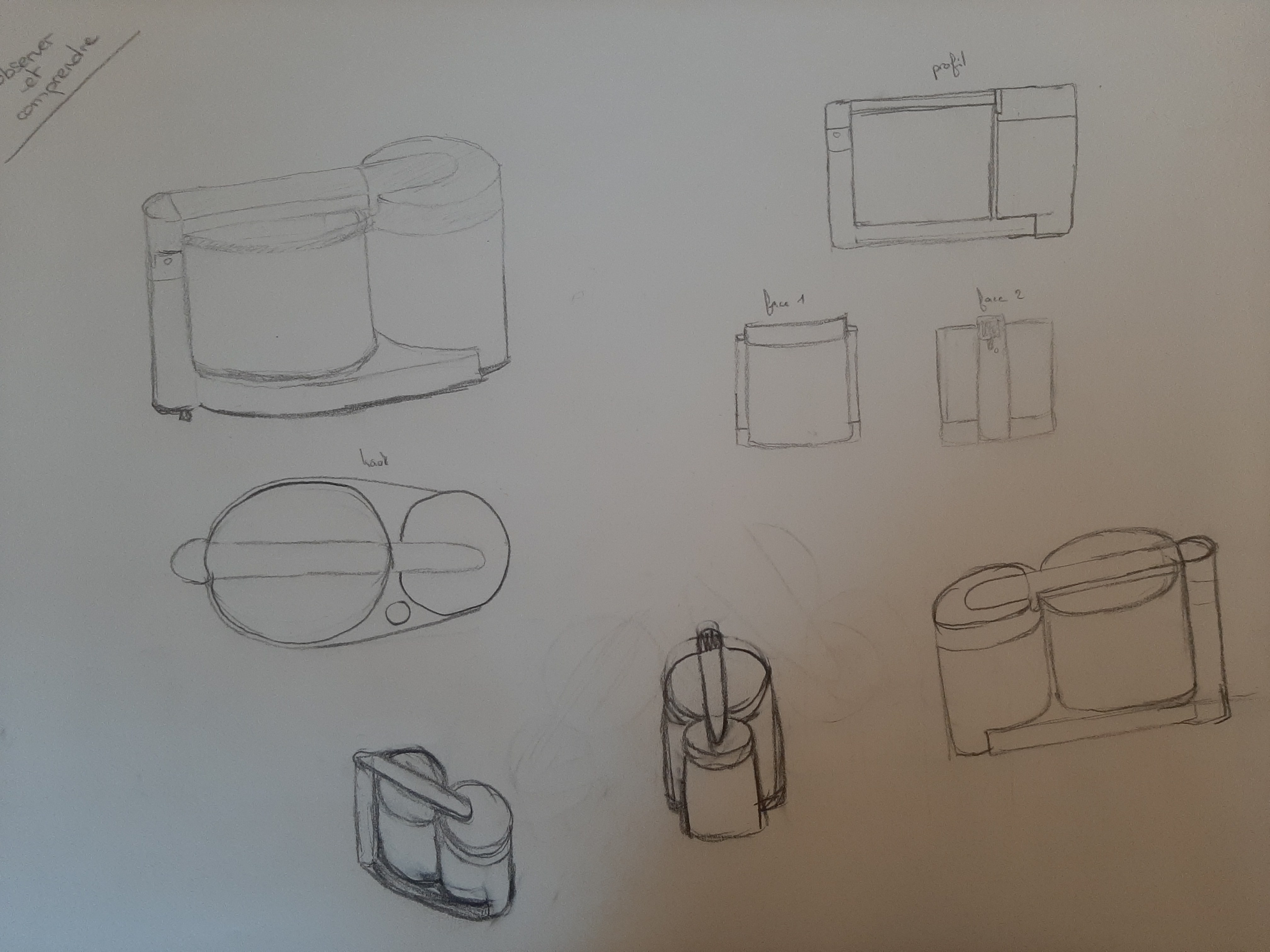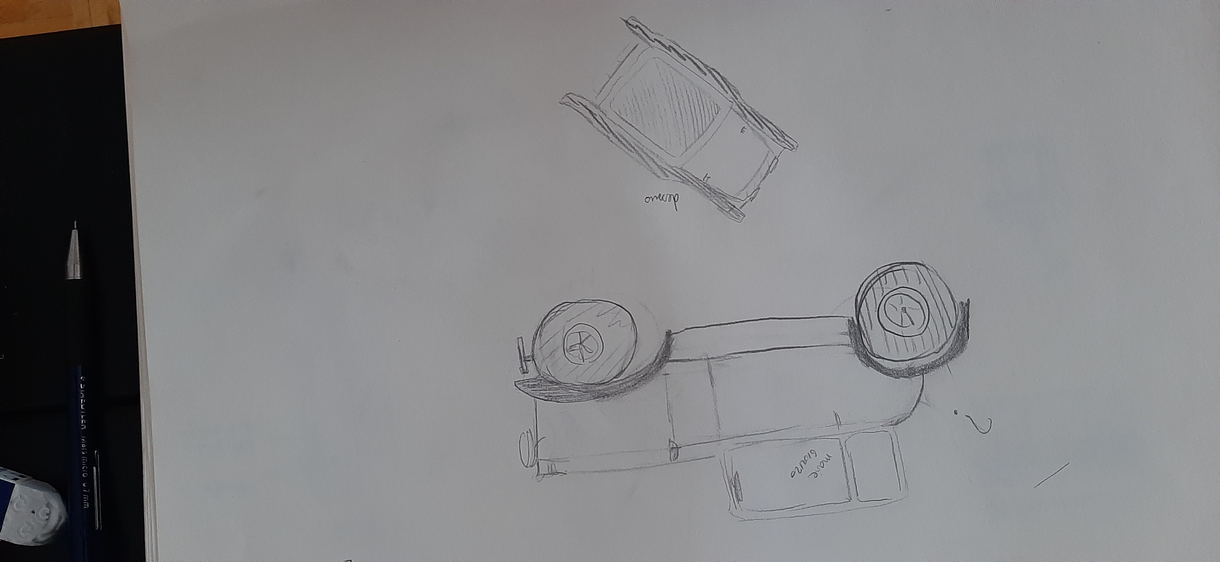 étonnement, c'est la vue de profil, celle que je pensais la plus difficile qui a était pour moi la plus facile et rapide à faire. La vue du dessus j'ai simplement reporter les côtes de mon premier dessin mais pour moi la plus grosse difficulté a été la vue de face, je n'arrive pas à m'imaginer comment va être le devant de la voiture (on le voit avec l'espace laisser en blanc).