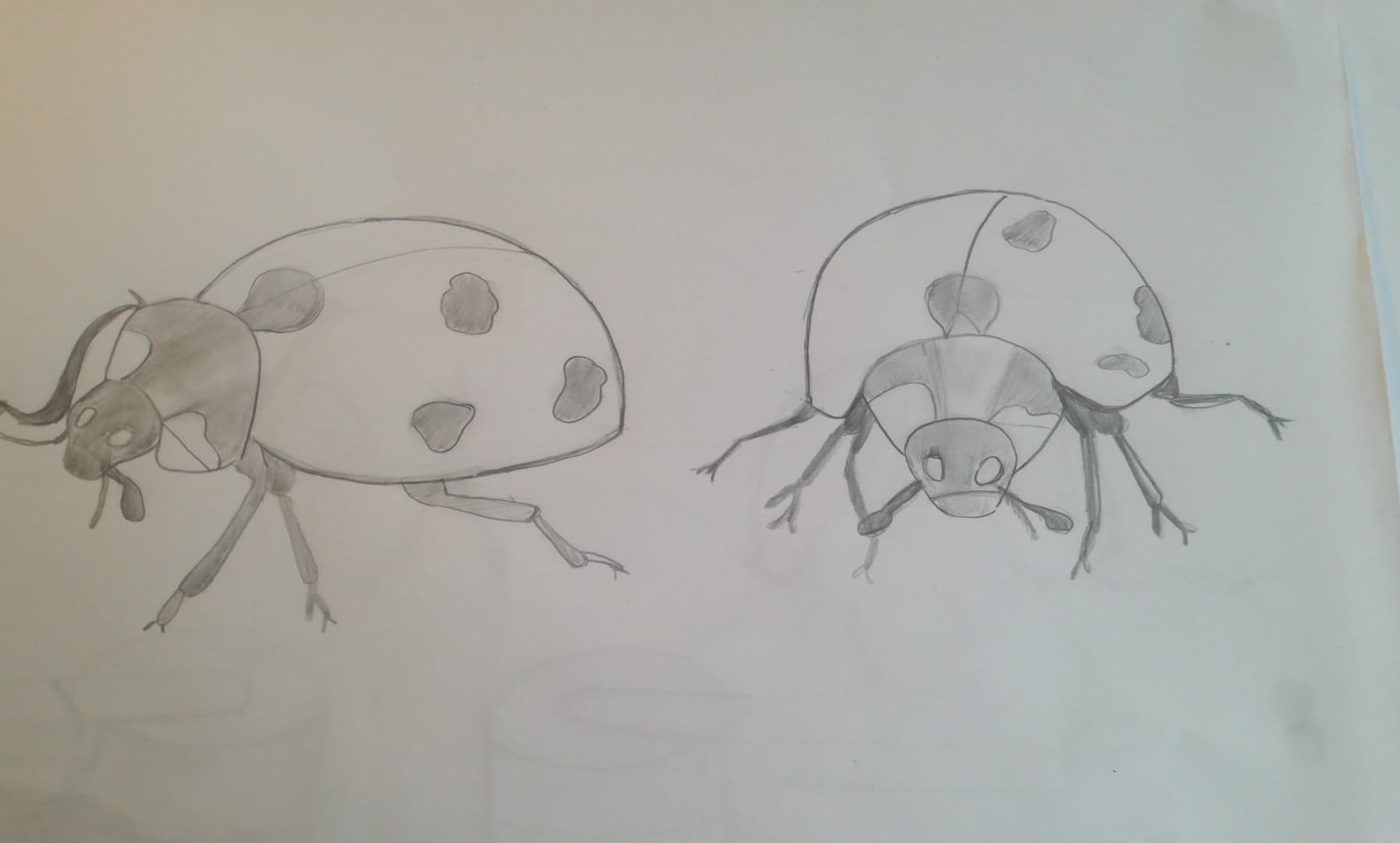 Your left ladybug is great 👍 It's awesome! However, the one on the right has a slight asymmetry around the head, it veers a bit too much to the right in my opinion! But apart from that small detail, it's really good, keep it up 😁👍