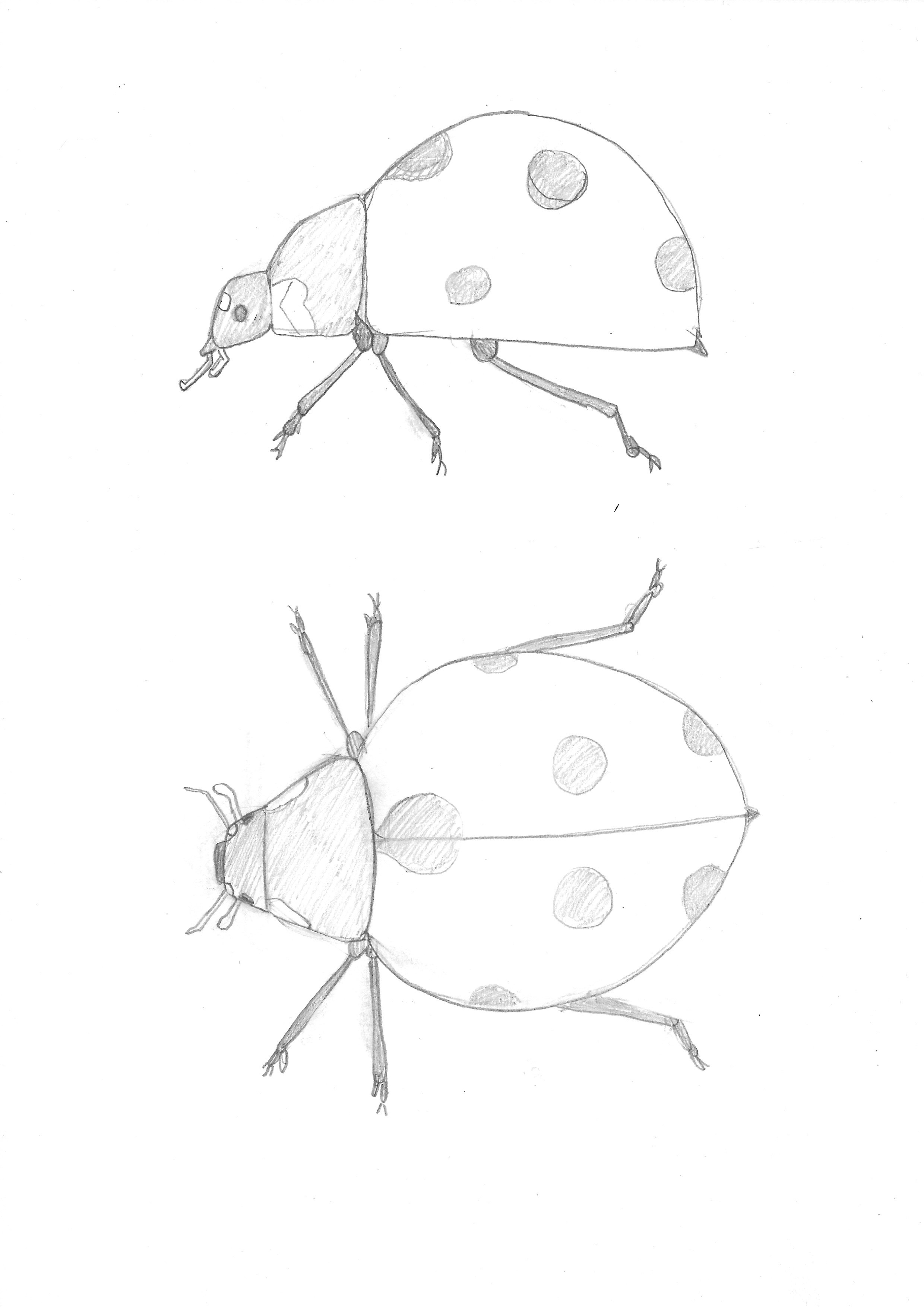 Ensuite la coccinelle, j'ai trouvé super difficile d'essayer d'avoir les proportions justes ..? Je ne sais pas non plus dans quel niveau de détail on est sensé aller lorsqu'on pratique ce genre d'étude. Est ce qu'il faut essayer d'aller dans le détail?