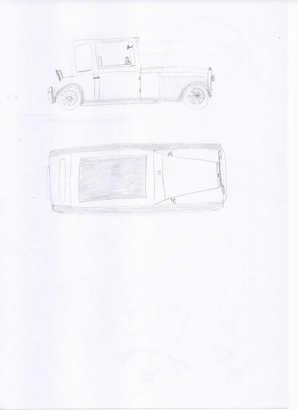 Enfin la voiture, alors là très difficile pour les proportions, et pour la forme du "capot", je n'arrive pas à voir si il est "parallélépipède" ou s'il est effilé vers l'avant ... si quelqu'un peut m'aider sur la question 😆 j'ai décidé qu'il serait effilé vers l'avant.