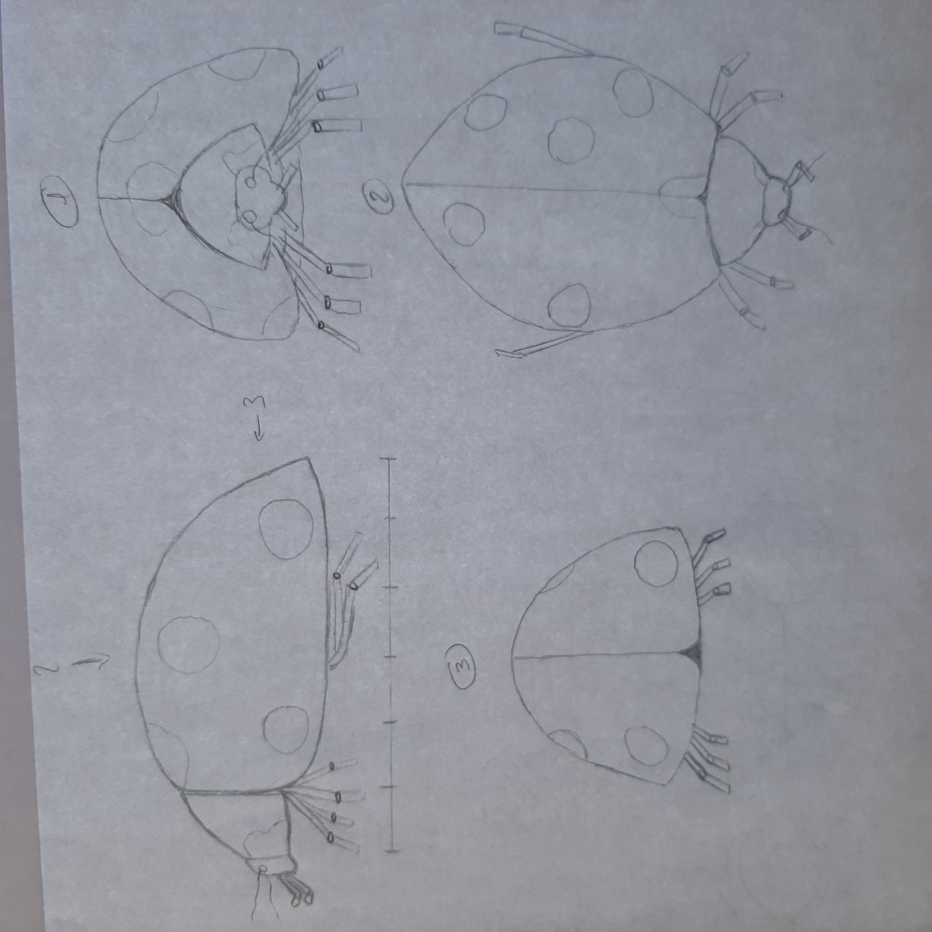 Ta coccinelle est pas mal, bien qu'un peu plate, elle mériterait un peu plus d'arrondi (sauf sur la vue de 3/4 ^^)