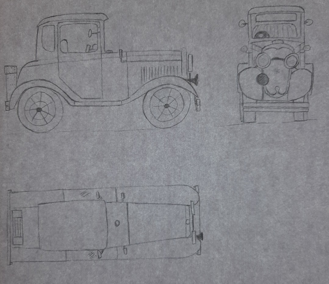 Si je devais pinailler, ce serait par rapport à la forme du capot que tu as fait totalement horizontal, alors que sur ta vue de face, ce n'est pas le cas (et c'est plus juste ^^).