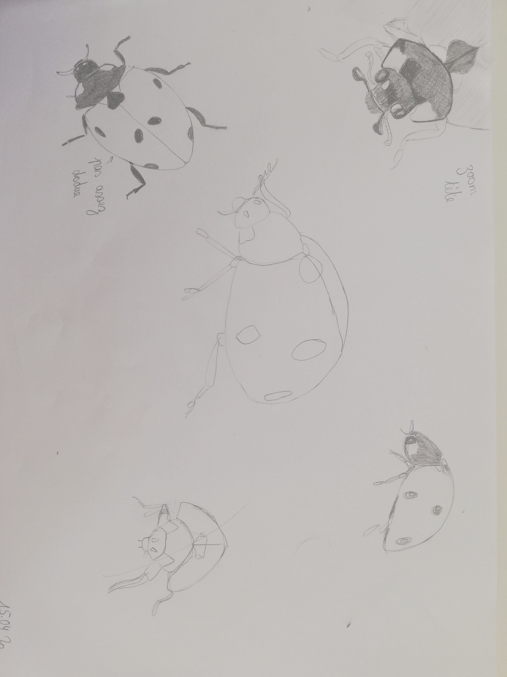 Prends ton temps et fais les choses à ton rythme. Si tu veux refaire un insecte sans documentation, je te propose ce scarabée : http://oneminutebugs.com.au/wp-content/uploads/2014/12/greenscarab_2.jpg