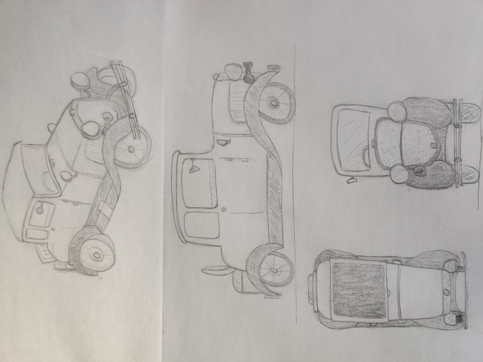 C'est pas mal du tout et tu as poussé pas mal le détail. Je te joins un croquis avec les petites erreurs de face de dessus. ^^