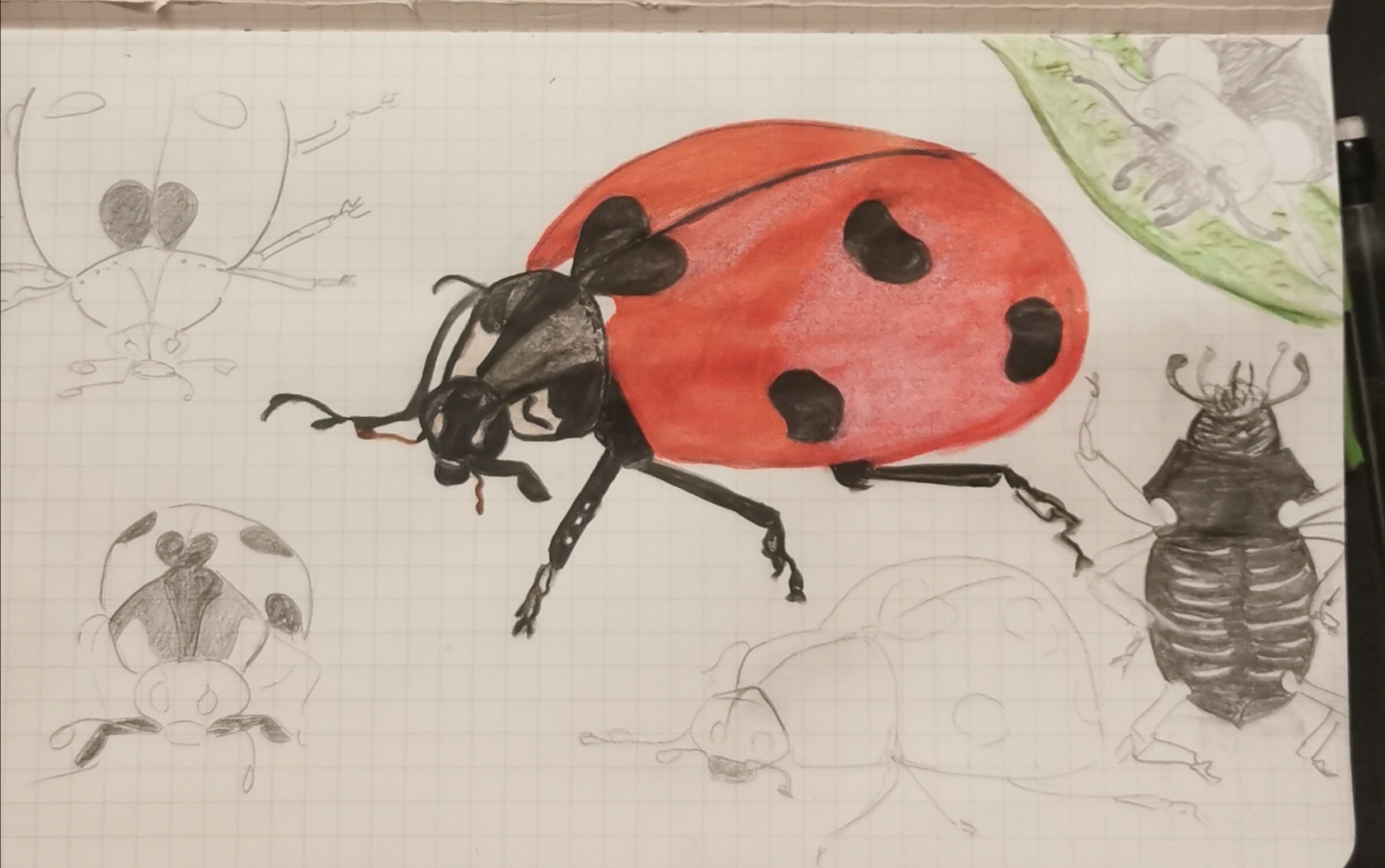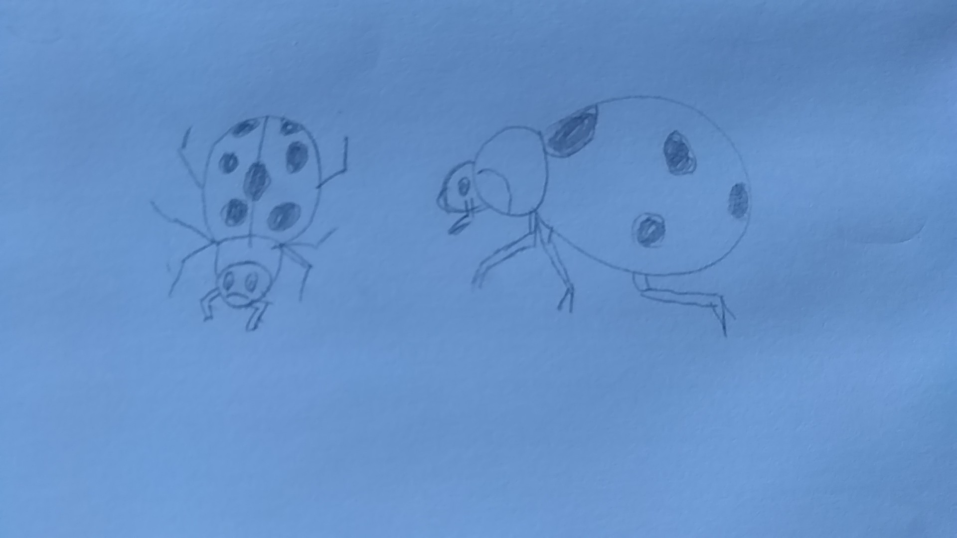 Indeed, this exercise is the first step to learning how to draw from imagination ^^ That's the whole point, actually, hehe. You understood well how the ladybug was structured and managed to navigate around it, quite subtly ;p You just flattened it a lot in the front view (poor thing), but other than that, we're doing pretty well :D