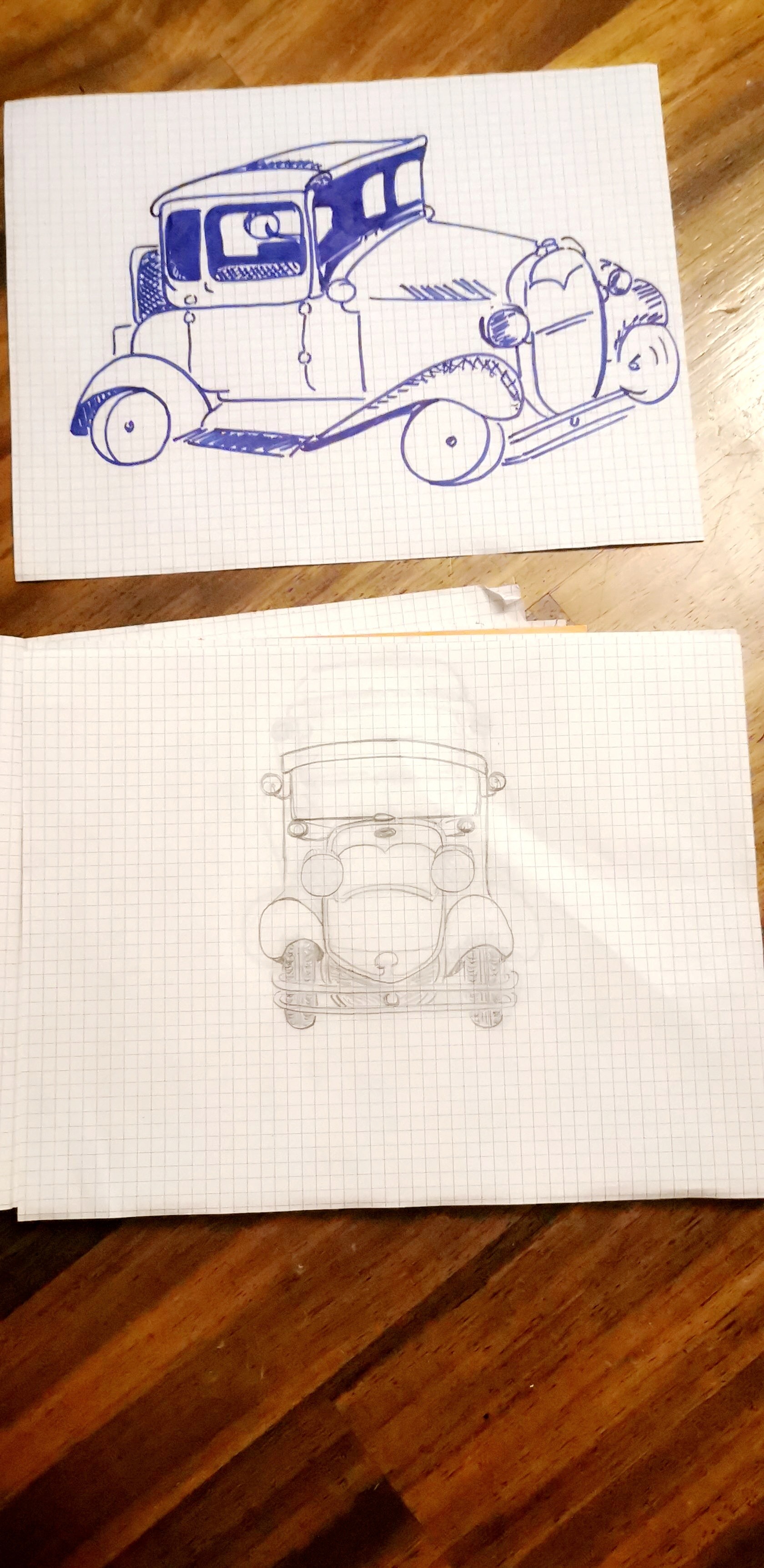 En effet, j'ai un peu tassé mes dessins.. . J'ai rectifié le tir pour la voiture, qui a fait couler beaucoup de sueur !