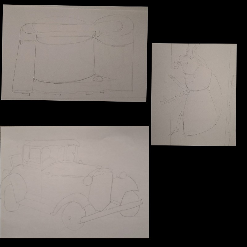 Tu as très bien réussi la coccinelle et la voiture, les roues devraient être un peu plus grandes, mais c'est déjà bien réussi comme ça!