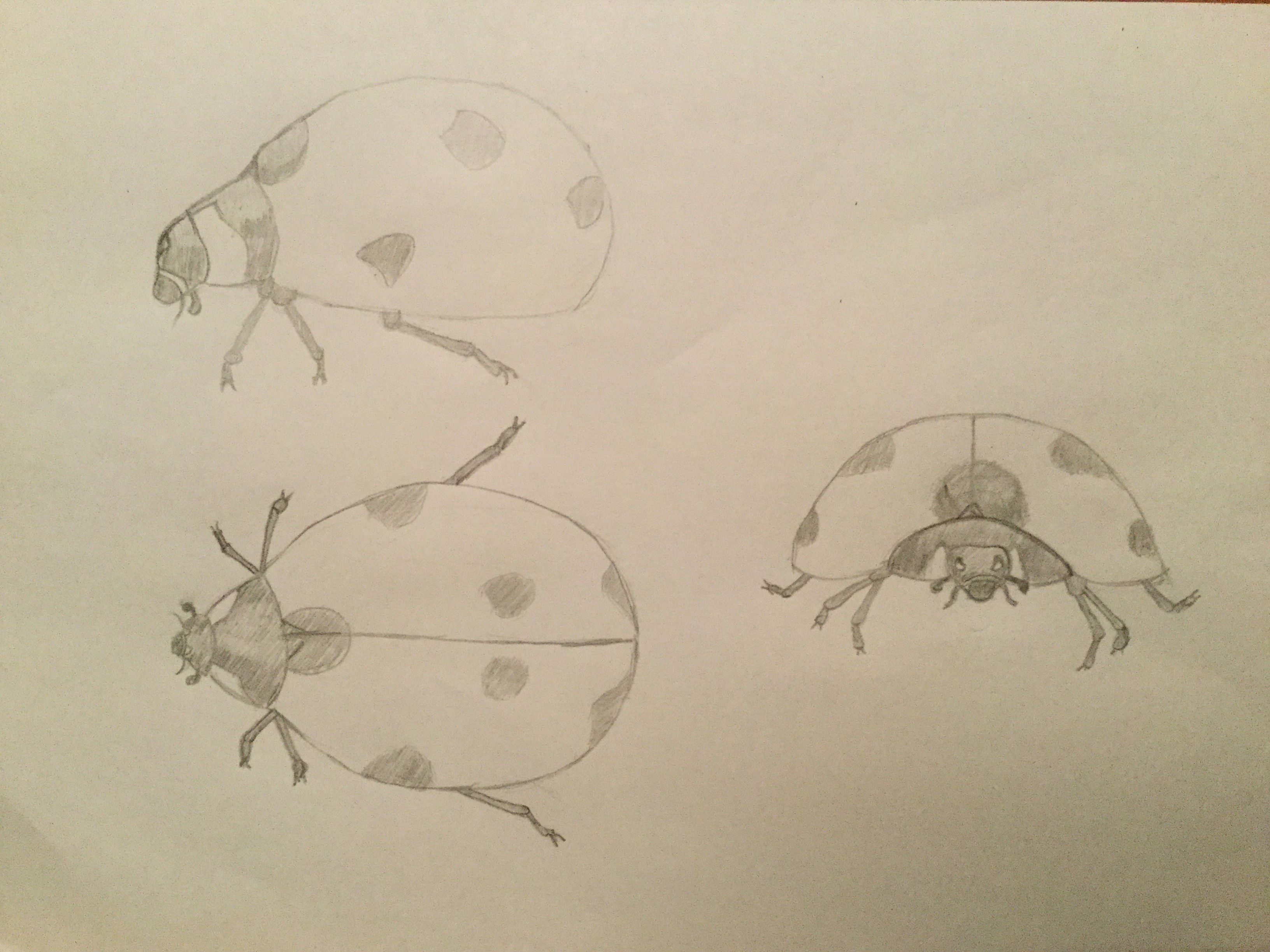 La coccinelle est bien, fait juste gaffe à ce que sa tête soit alignée avec son corps, aide toi de la ligne que tu as tracé sur son "dos" 😉