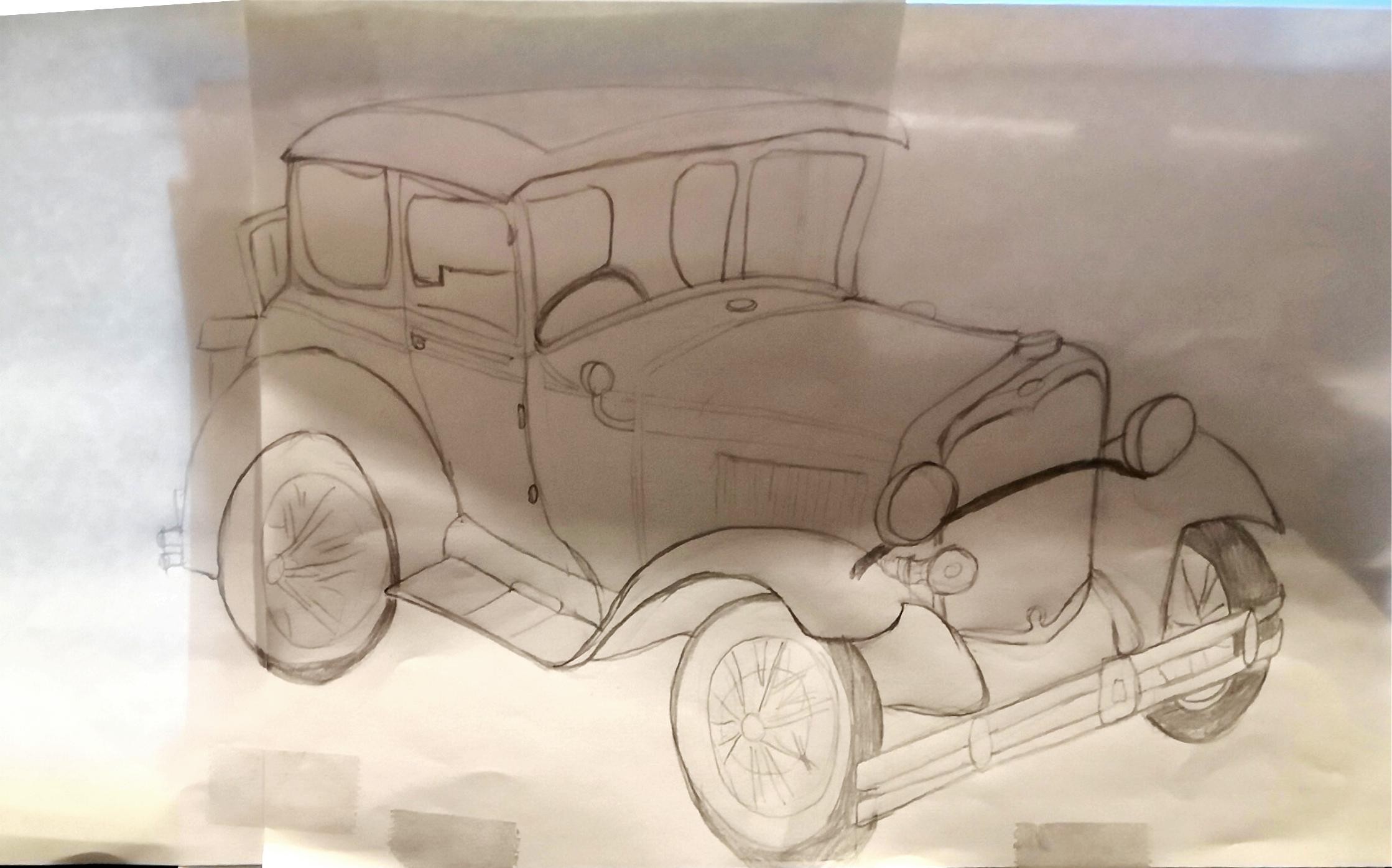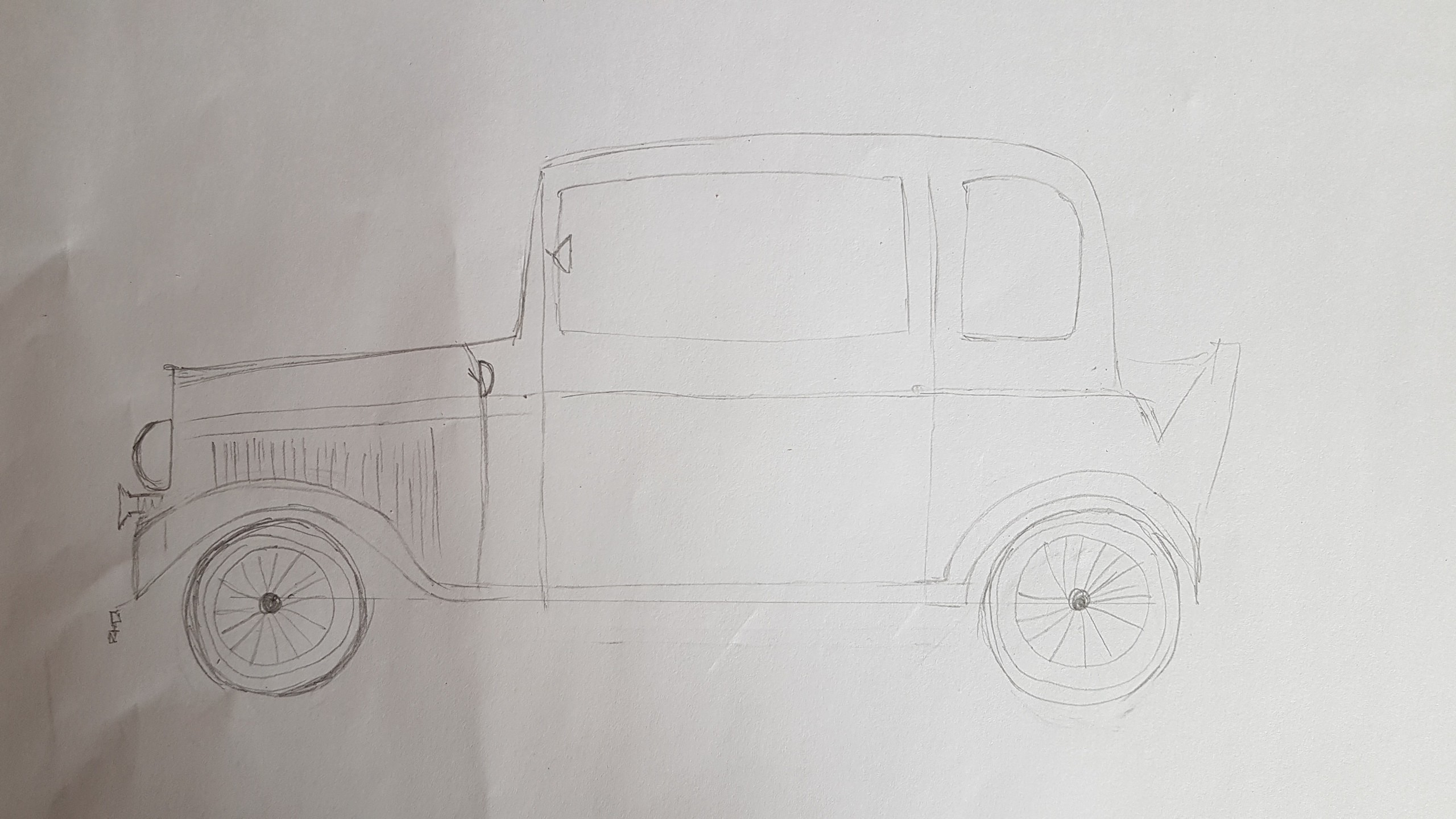 Here are my sketches. First, the car. It's not quite there yet... but I'm still quite proud of myself... 🙂